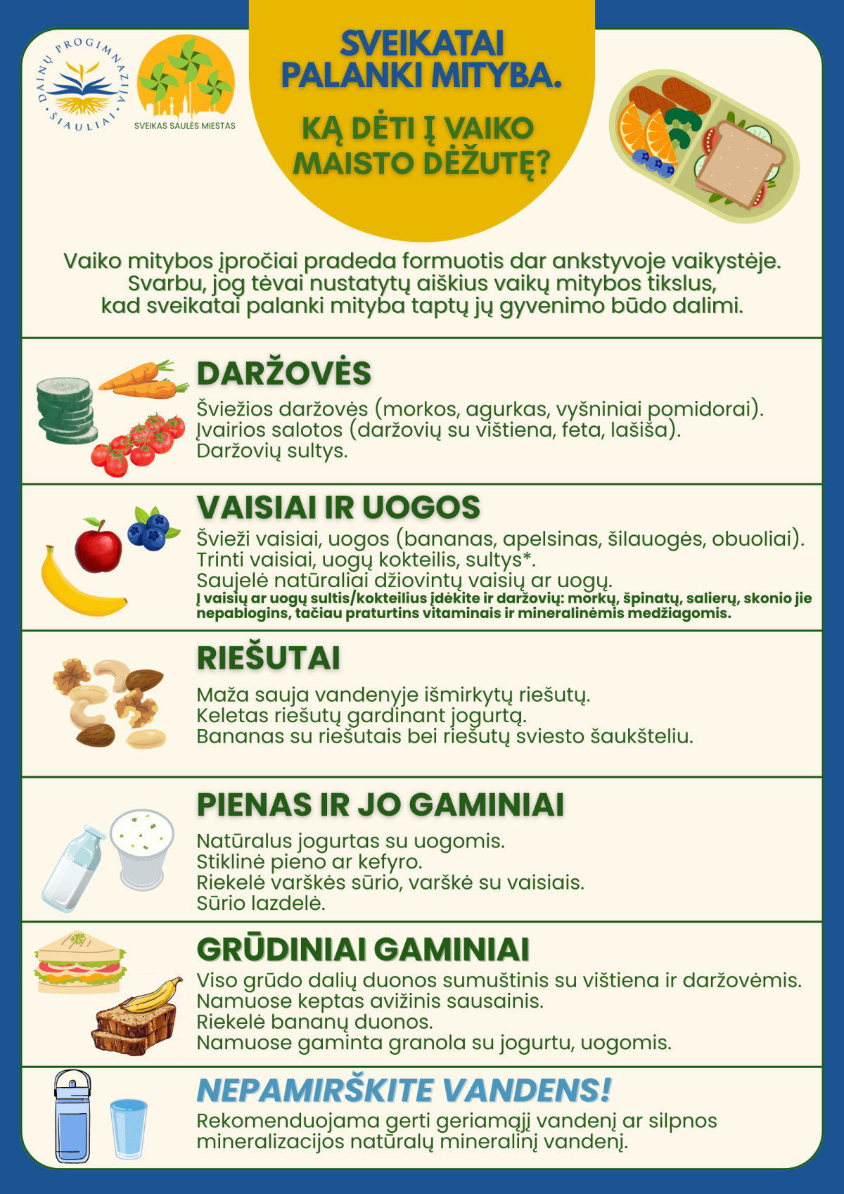 Sveikatai palanki mityba. Ką dėti į vaiko maisto dėžutę?