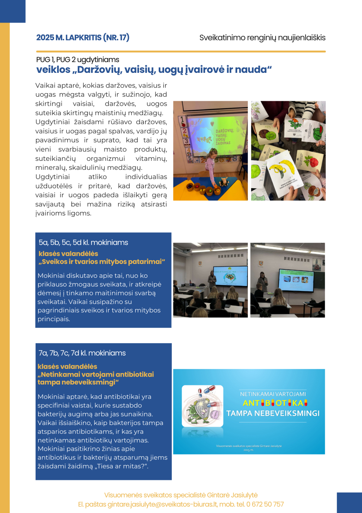 Lapkričio mėnesio visuomenės sveikatos specialistės sveikatinimo renginių naujienlaiškis