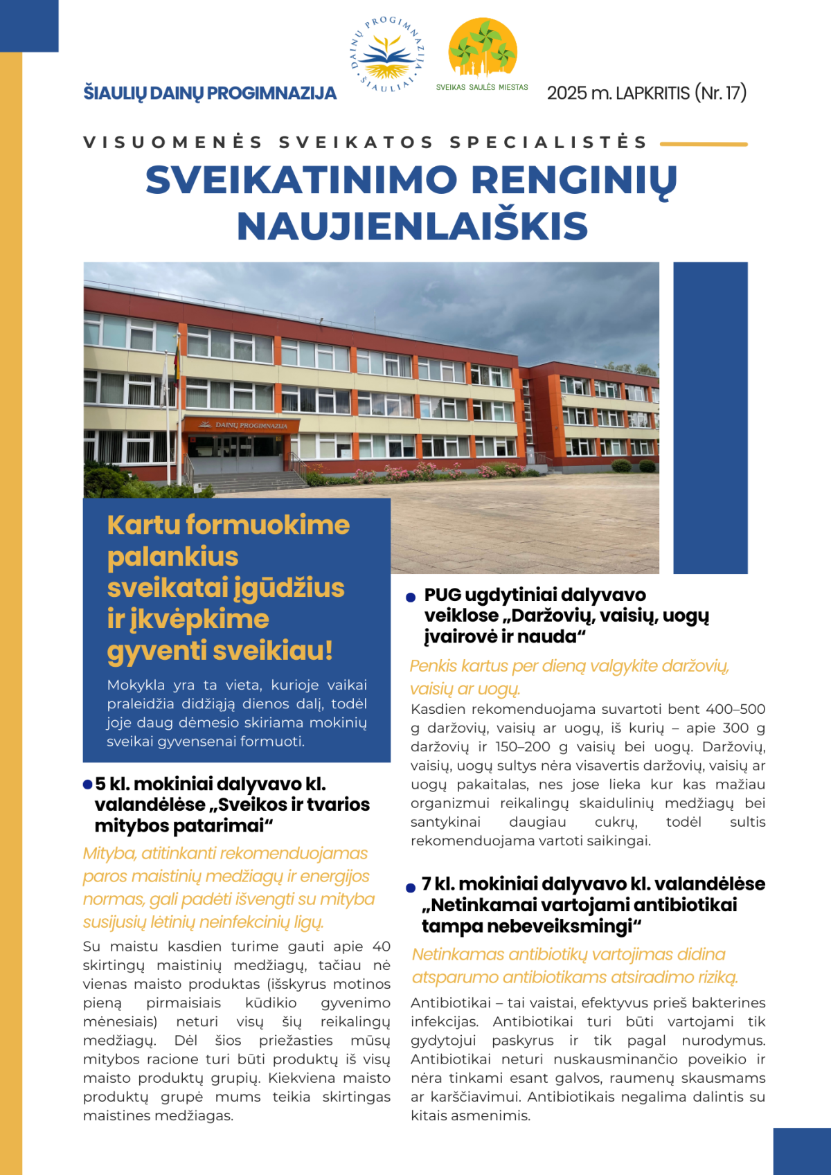 Kviečiame susipažinti su lapkričio mėnesio visuomenės sveikatos specialistės sveikatinimo renginių naujienlaiškiu.