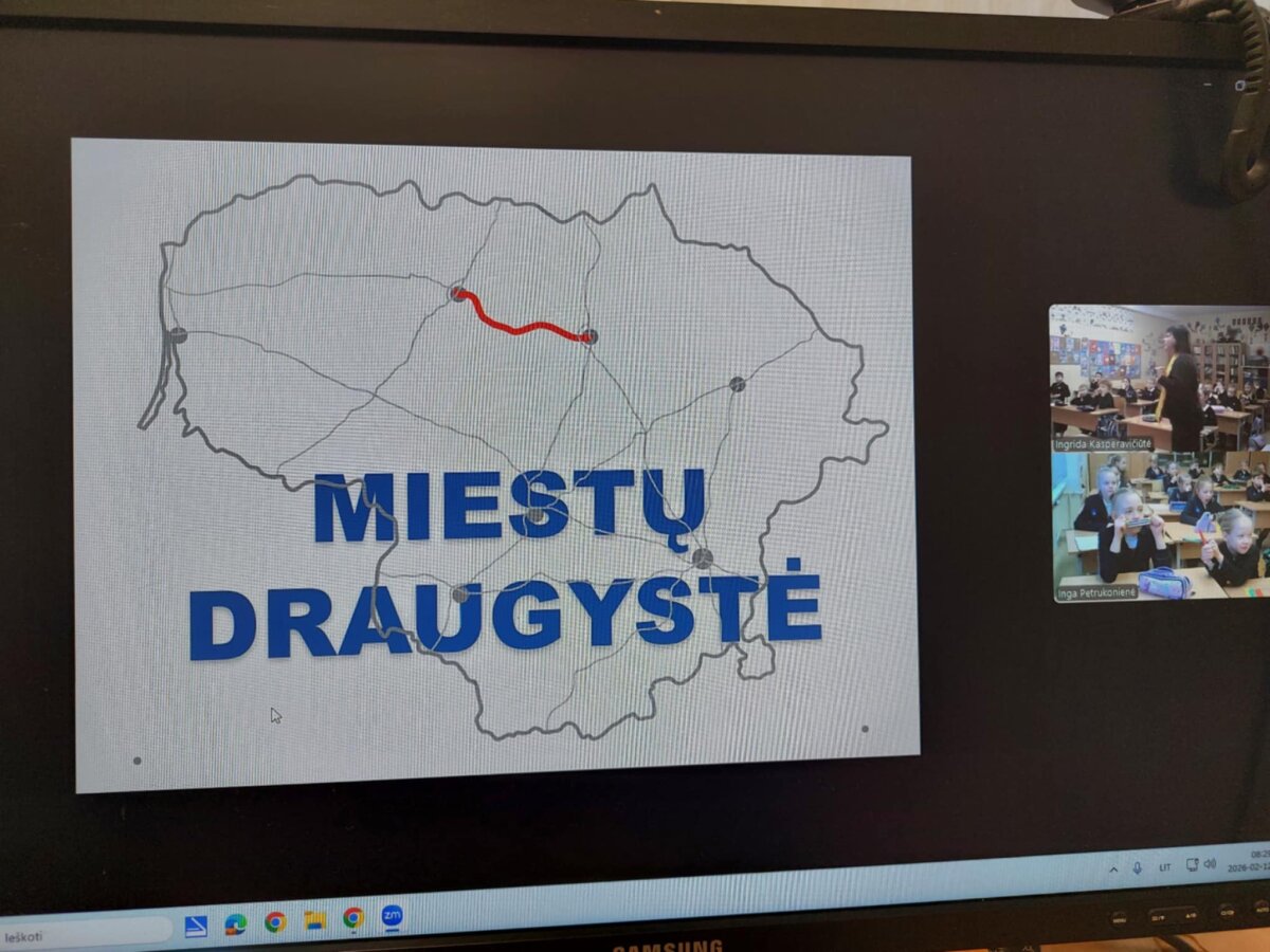 Nuotolinė pamoka, skirta vasario 16 d. Lietuvos valstybės atkūrimo dienai – sutelkė bendrauti ir bendradarbiauti skirtingų Lietuvos miestų mokinius ir kartu pažinti savo šalį.