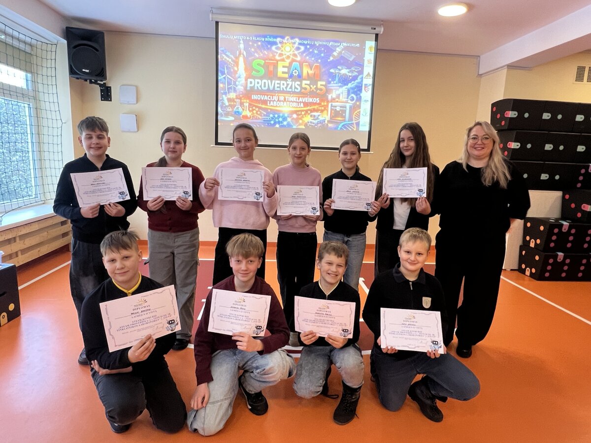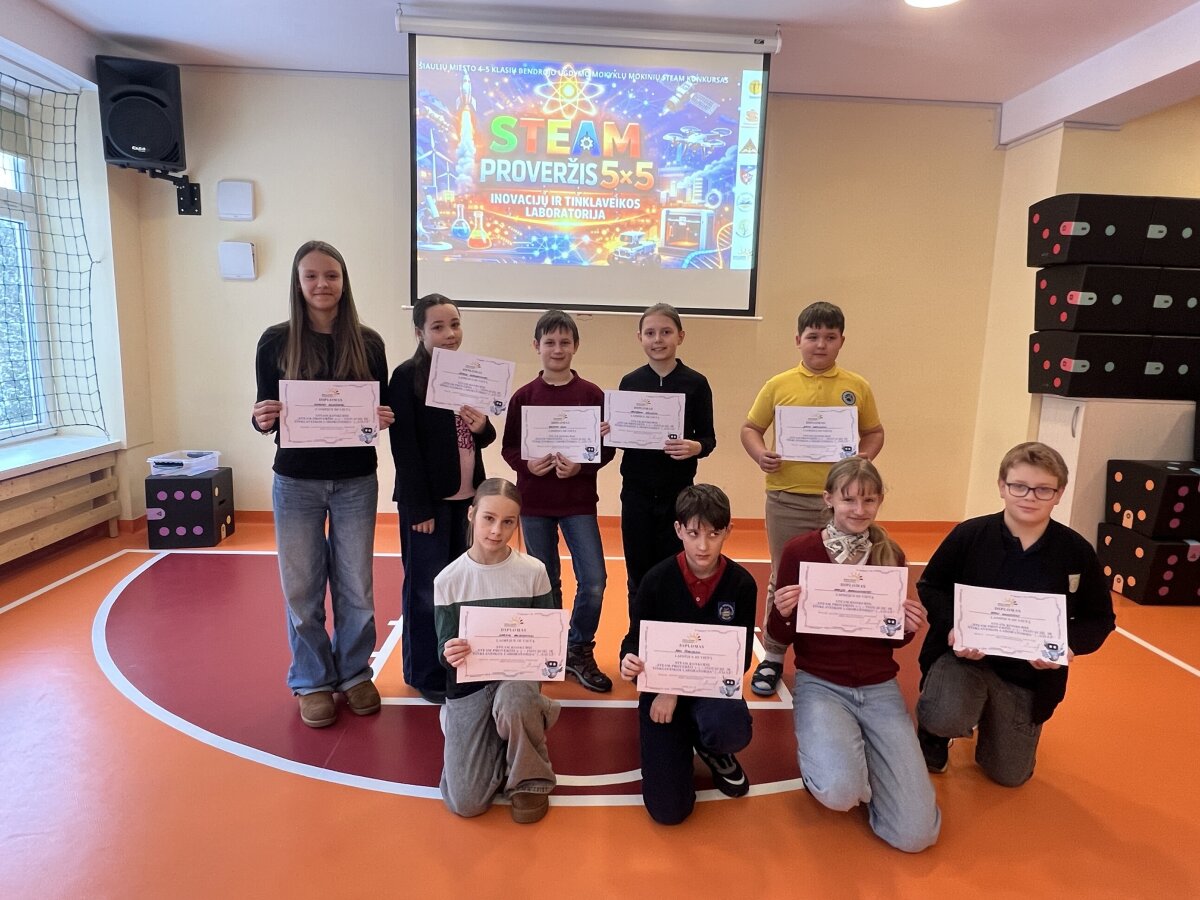 2026 m. sausio 27 d. Šiaulių Saulės pradinėje mokykloje vyko Šiaulių miesto bendrojo ugdymo mokyklų 4–5 klasių mokinių STEAM konkurso „STEAM PROVERŽIS 5×5 – INOVACIJŲ IR TINKLAVEIKOS LABORATORIJA“ trečiasis etapas.