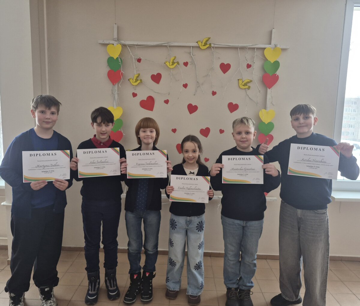 3c klasė: Kristupas Valantinas, Miglė Žukauskaitė, Gabija Andrulaitytė, Austėja Kavaliauskaitė, Jonas Stonys, Rokas Poškus (mokytoja Neringa Vėlienė)