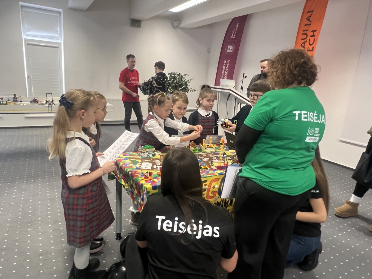 FLL Challenge lygos strategija, tikslumas ir inovacijos. Čia komanda „LEGOTRONAS“ sukonstruotu ir užprogramuotu robotu atliko užduotis specialiame varžybų lauke. Mokiniai demonstravo programavimo tikslumą, strateginį planavimą ir efektyvų laiko valdymą.