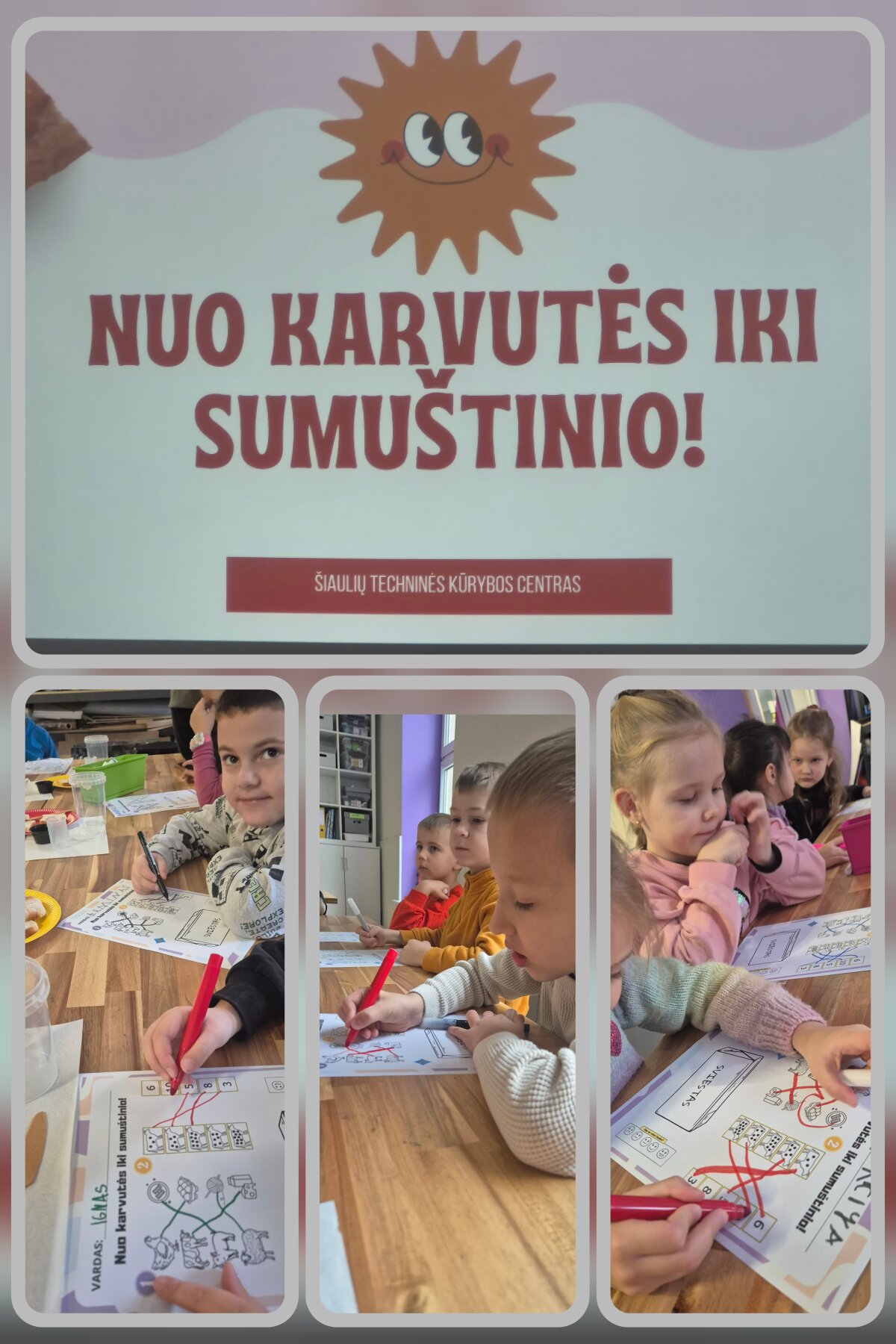 Šiaulių Dainų priešmokyklinio ugdymo PUG-1 grupės vaikai apsilankė Šiaulių techninės kūrybos centre, kur dalyvavo įtraukiančioje edukacijoje „Nuo karvutės iki sumuštinio“. Interaktyvios pamokos metu mažieji leidosi į smagų atradimų kelią. Vaikai sužinojo, kaip buvo gaminamas sviestas senoviniu sviestmušiu, kuo tikras sviestas skiriasi nuo margarino, kodėl laimingos karvutės duoda skanesnį pieną. Taip pat išgirdo įdomių istorijų apie pasaulyje rengiamas sviesto skulptūrų šventes.