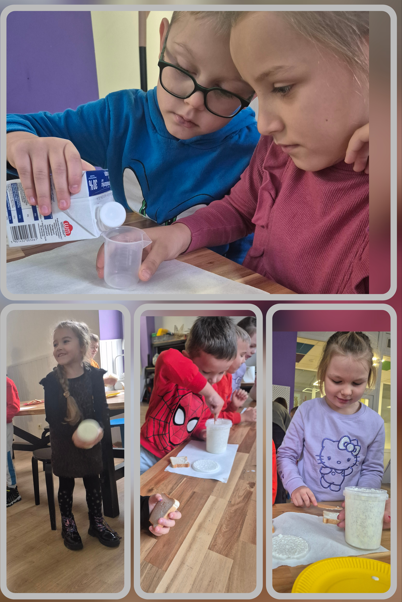 Didžiausia edukacijos staigmena – galimybė patiems pasigaminti sviestą. Vaikai ne tik stebėjo procesą, bet ir patys kruopščiai plakė grietinėlę, stebėjo, kaip ji tirštėja ir virsta tikru sviesto gumulėliu. Ši veikla suteikė vaikams ne tik žinių, bet ir daug juoko, atradimų bei smagių emocijų. O savomis rankomis pasigamintas sviestas tapo skaniausia dienos patirtimi!