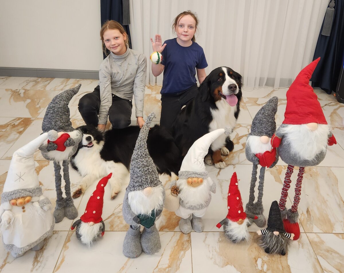 Gruodžio 19 dieną 4d klasės mokiniai išvyko į sodybą „Perkūno šėlsmas“ pas ypatingo grožio šuniukus. Sodyboje mus pasitiko Berno zenenhundo veislės šuo Turbo ir borderkolis River. Jie kiekvieną atvykusį pasveikino plačiomis „šypsenomis“ ir draugišku nusiteikimu.