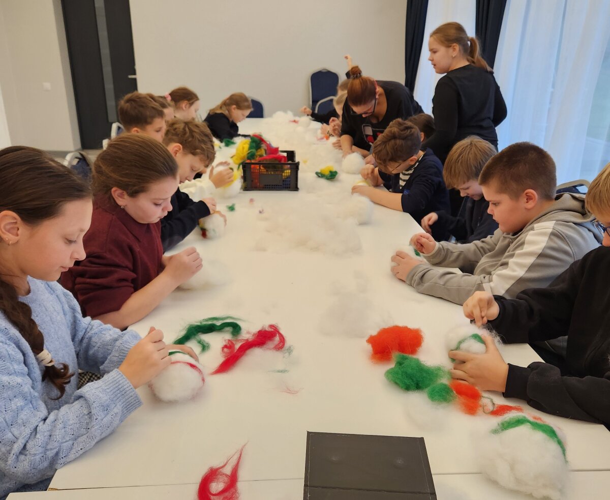 Kelionės tikslas buvo ne tik pasidžiaugti artėjančiomis šventėmis, bet ir pasigaminti kalėdinį žaisliuką iš vilnos. Šis darbas ketvirtokams pasirodė nelengvas – reikėjo kruopščiai ir atsargiai darbuotis su adata, vėliau kantriai muiluoti savo kuriamą žaisliuką, kol galiausiai buvo galima pasidžiaugti gražiu rezultatu.