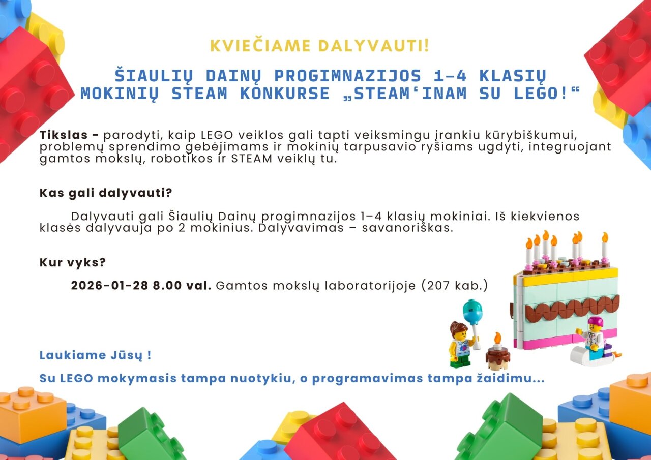 Kviečiame 1–4 klasių mokinius į LEGO STEAM iššūkį