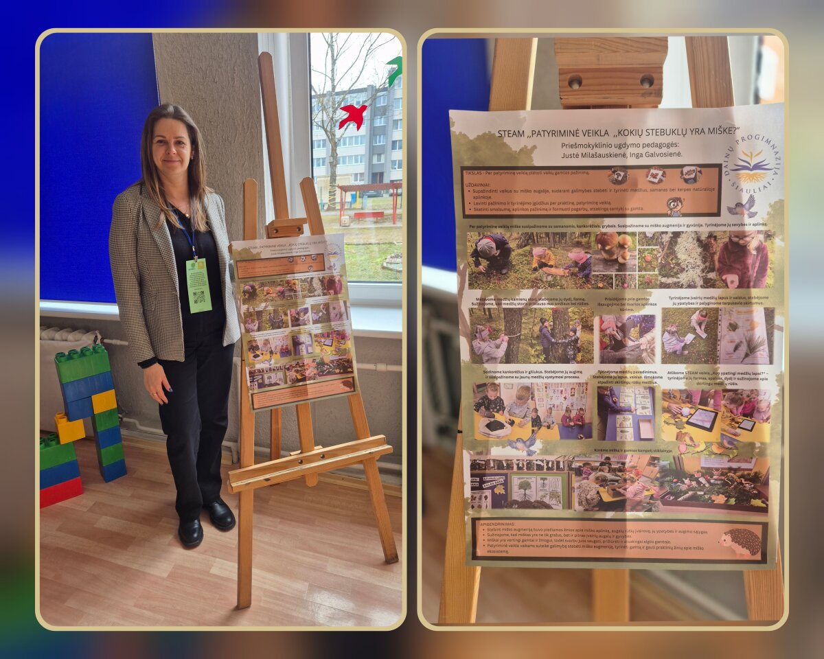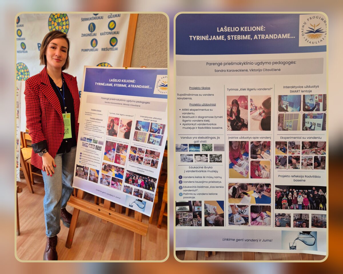 Šiaulių lopšelyje-darželyje „Berželis“ vyko konferencija „Patyriminis STEAM ugdymas: mokytojų gerosios praktikos“, subūrusi pedagogus dalintis patirtimi, idėjomis ir įžvalgomis apie šiuolaikinį ugdymą. Renginys tapo puikia erdve aptarti, kaip per patyriminę veiklą ugdyti vaikų smalsumą, kūrybiškumą bei kritinį mąstymą. Priešmokyklinio ugdymo mokytojos Viktorija Citavičienė ir Sandra Karaveckienė pristatė pranešimą „Lašelio kelionė: tyrinėjame, stebime, atrandame“. Mokytojos Justė Milašauskienė ir Inga Galvosienė pristatė pranešimą „Kokių stebuklų yra miške?“.