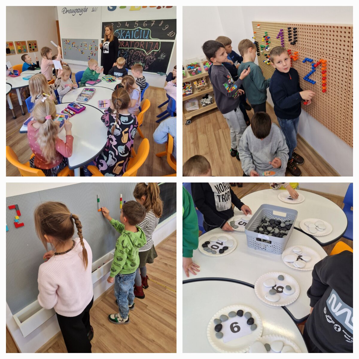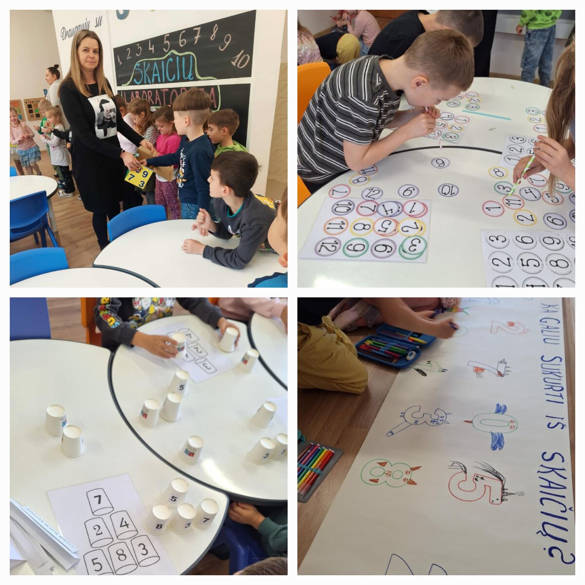 Spalio 22 d. PUG-2 grupės ugdytiniai aplankė lopšelio-darželio „Pupų Pėdas“ Meškučių grupės vaikus ir pakvietė juos dalyvauti mokytojos Justės Milašauskienės organizuotoje kūrybinėje STEAM veikloje „Skaičių laboratorijoje“. Šios veiklos metu mokiniai pasinėrė į skaičių pasaulį, tyrinėdami jį per įvairias žaismingas ir kūrybiškas užduotis. Skaičiai virto ne tik mokymosi objektu, bet ir įkvėpimu kurti, konstruoti, ieškoti, atrasti. Priešmokyklinukai eksperimentavo su skirtingomis medžiagomis, lavino loginį mąstymą, smulkiąją motoriką, vaiduotę ir bendradarbiavimo įgūdžius. „Skaičių laboratorija“ tapo erdve, kurioje kiekvienas galėjo tapti mažuoju tyrinėtoju – pūsti, dėlioti, skaičiuoti, kurti ir atrasti skaičių pasaulio paslaptis. Veikla skatino vaikų smalsumą, saviraišką ir džiaugsmą mokantis per patirtį.
