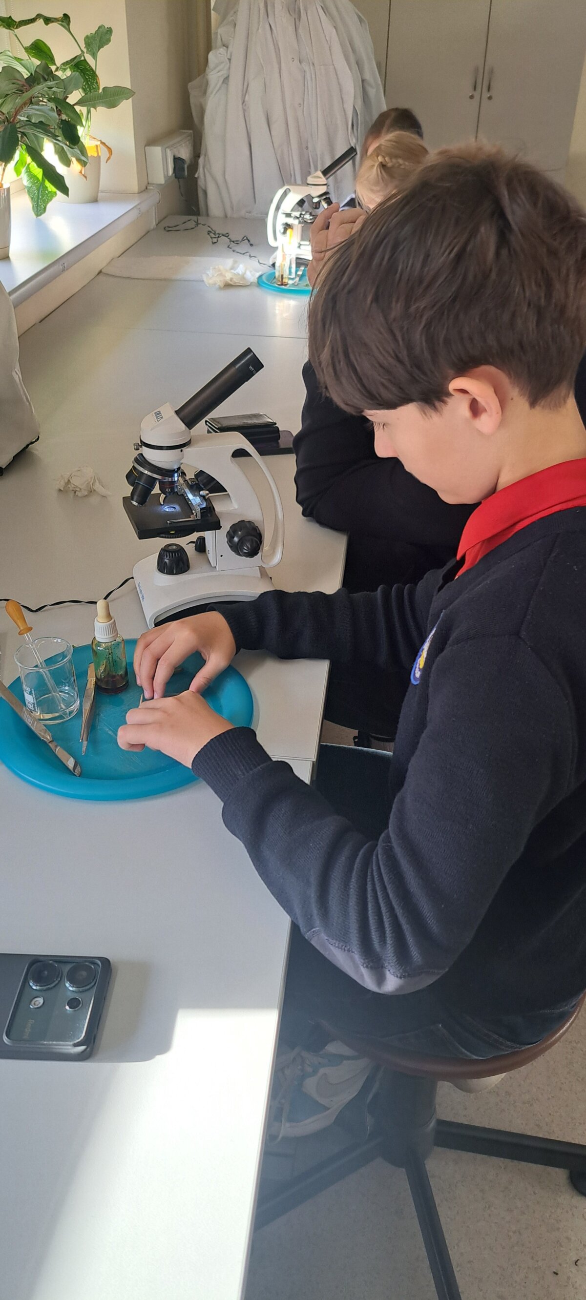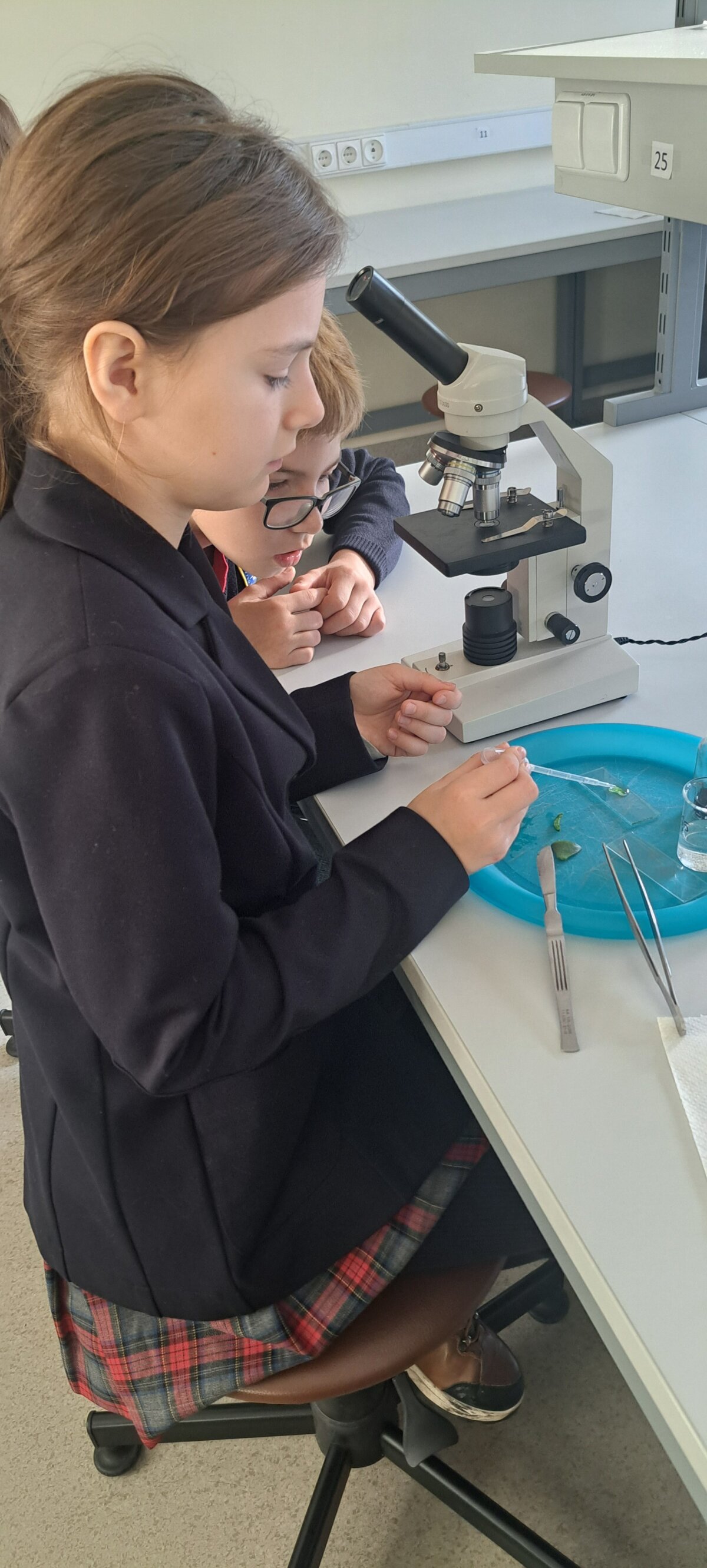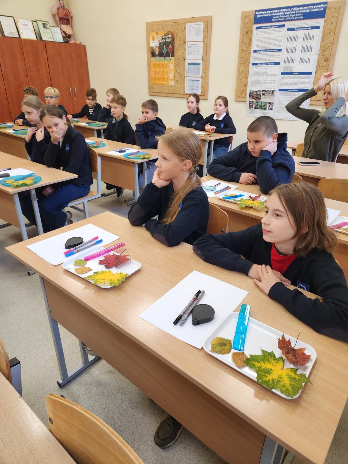 Mokiniai biologijos laboratorijoje susipažino su fotosintezės procesu, kuriam vykstant žalieji augalai savo lapuose gamina organines maisto medžiagas ir išskiria deguonį. Sužinojo ir stebėjo per mikroskopą, kaip vyksta fotosintezė lapų ląstelėse, nes čia yra chloroplastų su chlorofilu. Ketvirtokai lygino augalo ląsteles su žmogaus burnos ląstelėmis ir padarė išvadą, kad žmogaus burnos ląstelės deguonies negamina, o augalai gamina.