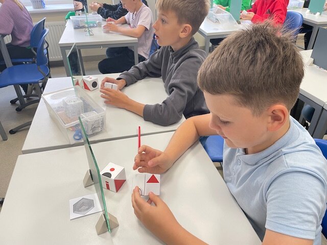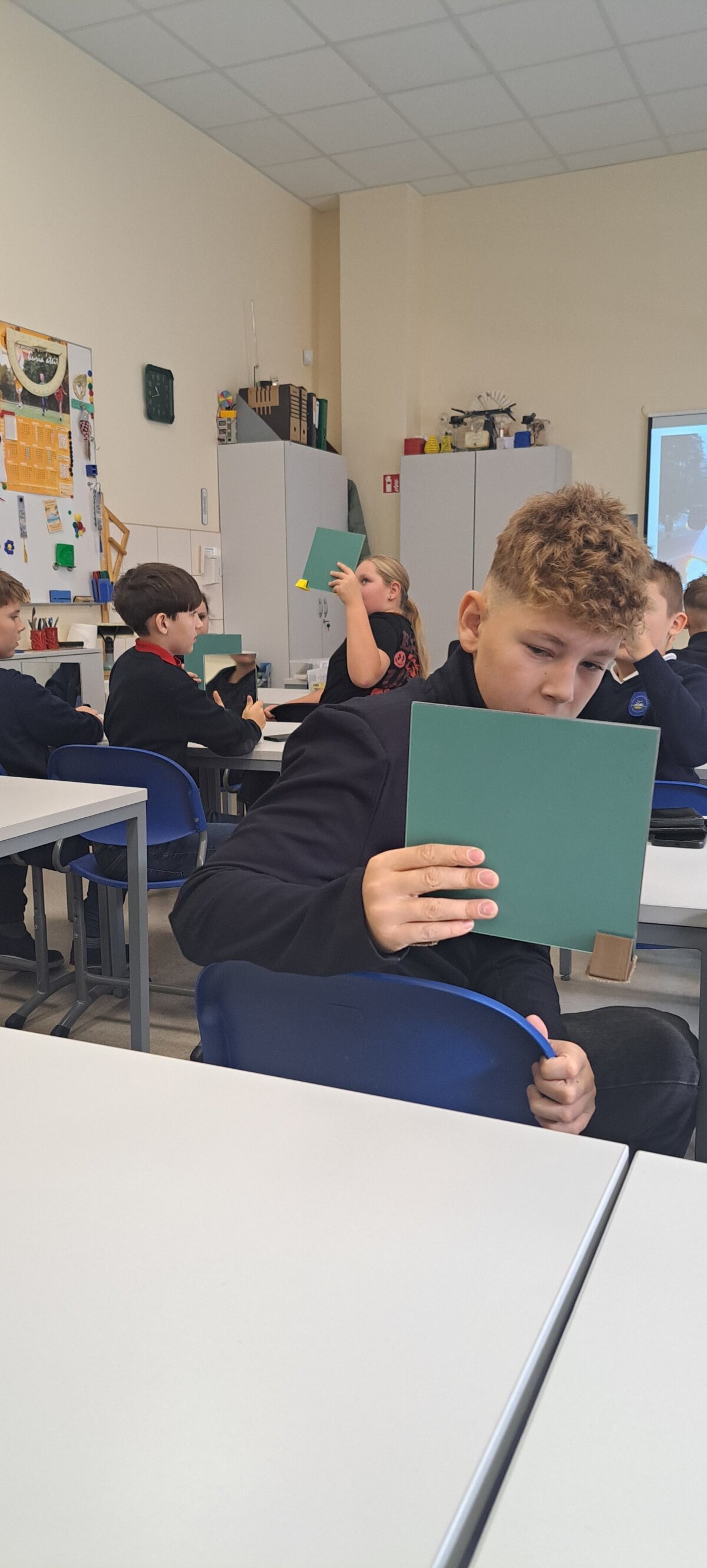 Fizikos laboratorijoje mokiniams paaiškino, kas yra veidrodis? Ar du veidrodžiai vienas prieš kitą sukuria begalinį atvaizdą? Kam naudojami veidrodžiai? Ketvirtokai įtvirtino žinias apie simetriją. Rašė atvirkštiniu būdu, o veidrodyje skaitė tekstą. Pabandė paveiksle pamatyti tai, ko nemato kiti. Pavyko! Rado dar paslėptus 5 veidus. Veidrodžių magija naudojasi iliuzionistai.