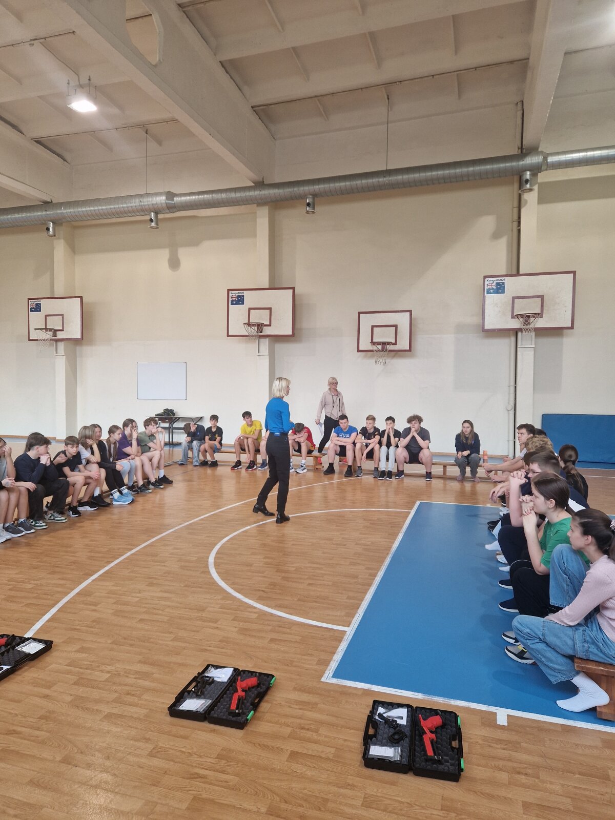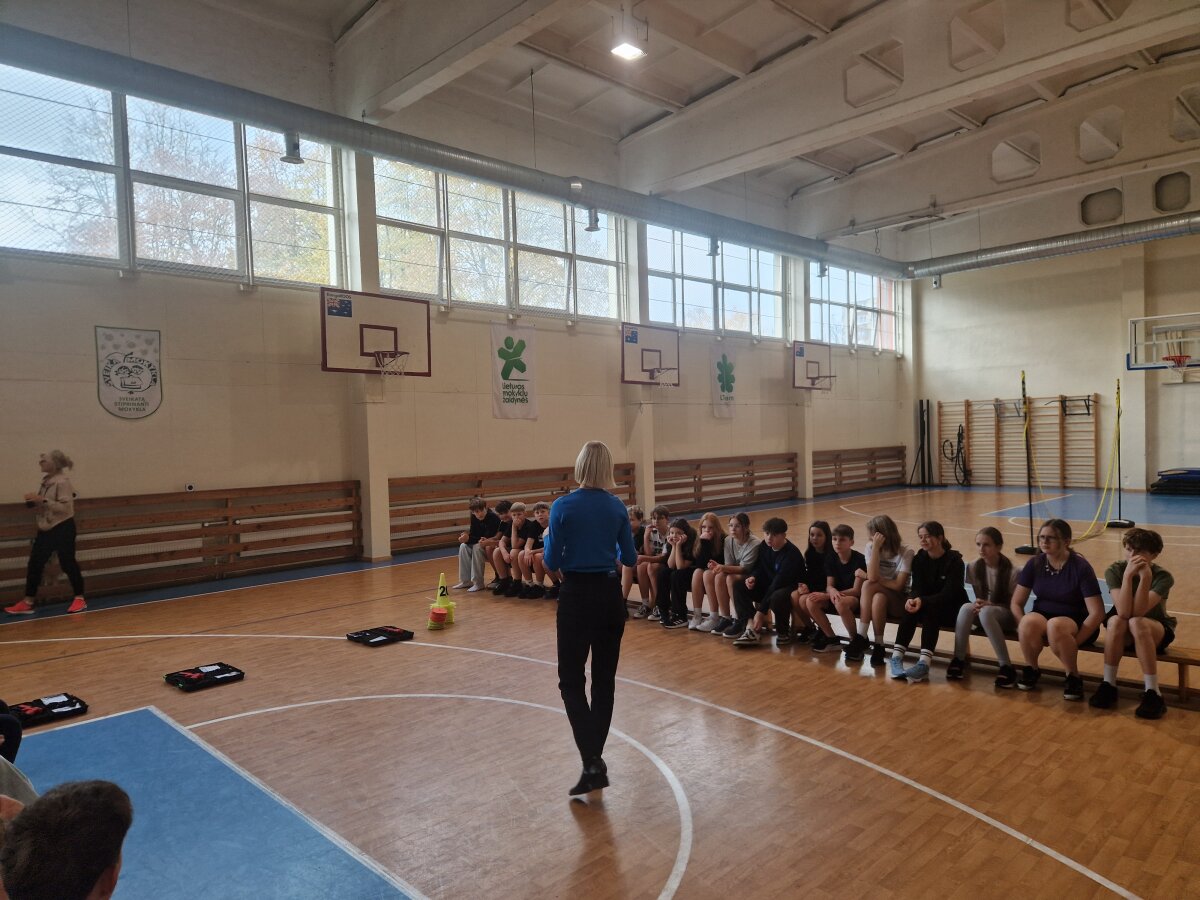 Rungtį mokiniams pristatė šiuolaikinės penkiakovės sporto atstovė Remalda Kergytė-Dauskurdienė, supažindinusi mokinius su Laser Run taisyklėmis, naudojama įranga ir treniruočių specifika.