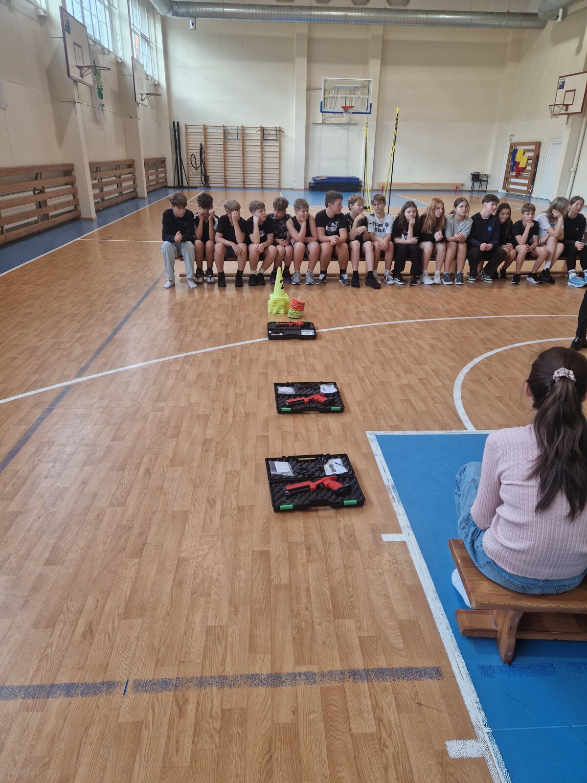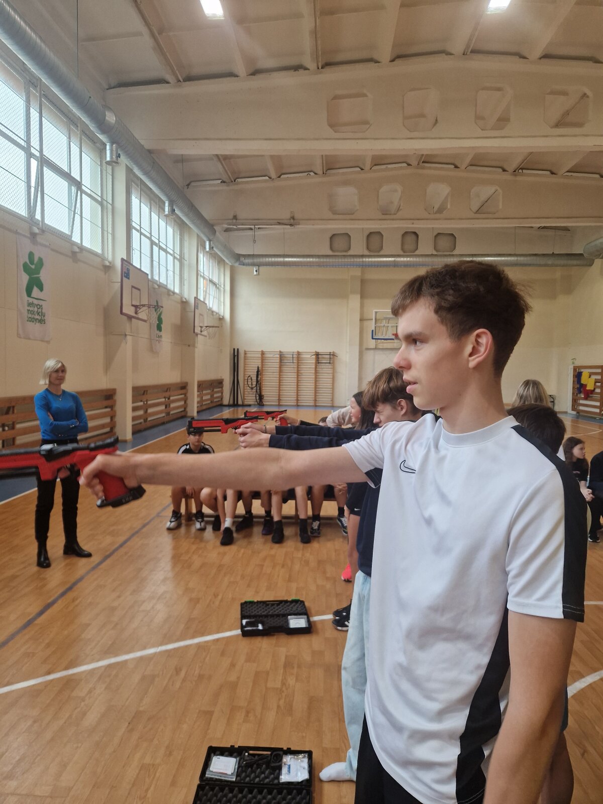 Šiaulių Dainų progimnazijos 5–8 klasių mokiniai šiemet įsitraukė į sportinį projektą „Ugnies linijoje“, kuriame susipažįsta su šiuolaikinės penkiakovės dalimi – Laser Run rungtimi. Tai aktyvi ir smagi veikla, jungianti bėgimą ir taiklų šaudymą lazeriniu pistoletu.