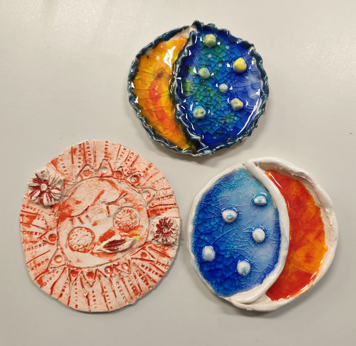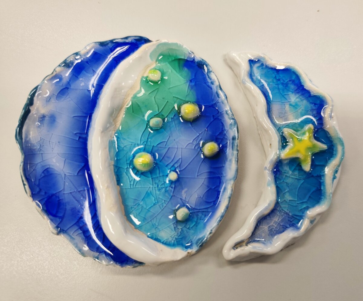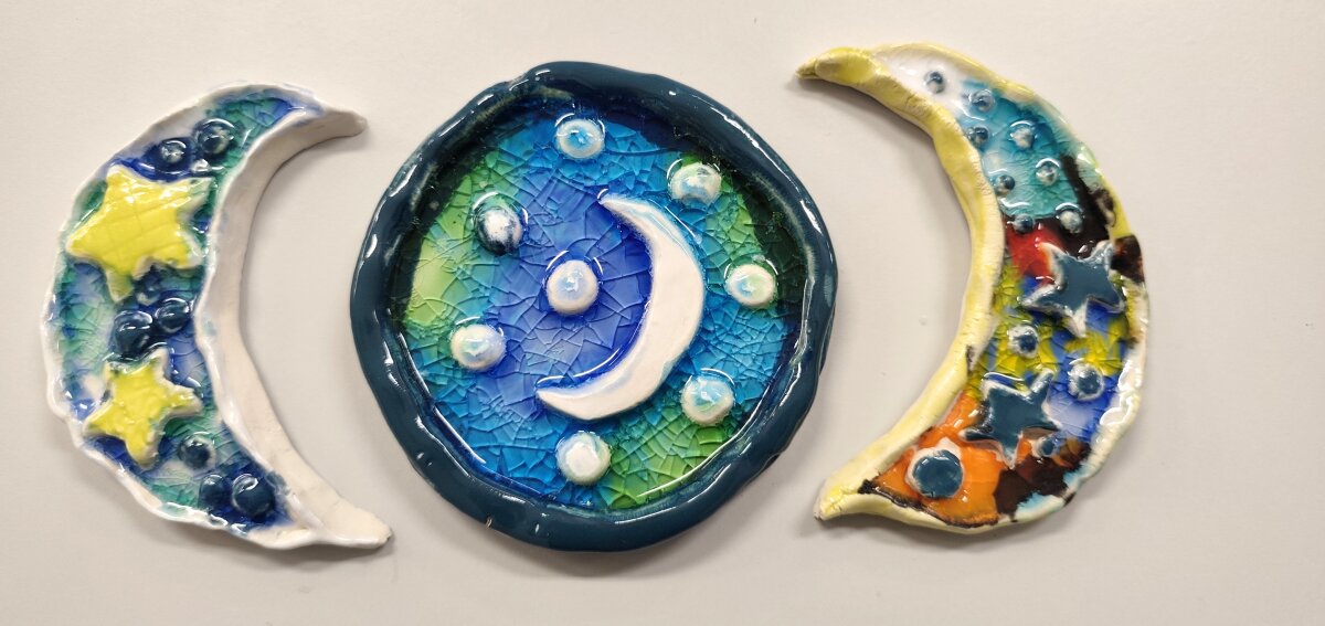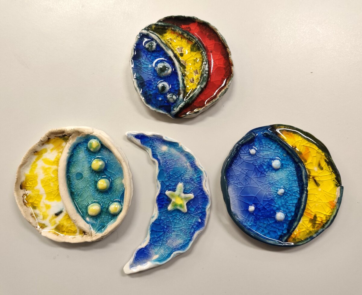 Keramikos būrelio „Lipdynukai“ (2–4 kl.) mokiniai kuria įvairius keramikos dirbinius iš molio – jau gimė kalėdinės pirštinės, dangaus kūnai ir kiti vaikiškos fantazijos įkvėpti darbai. Vaikai drąsiai eksperimentuoja su formomis, dydžiais ir paviršiais, ieško savitų sprendimų ir per kūrybą išreiškia save.