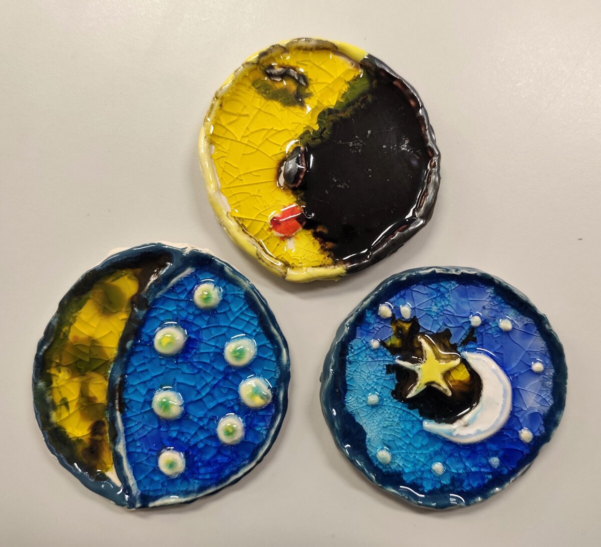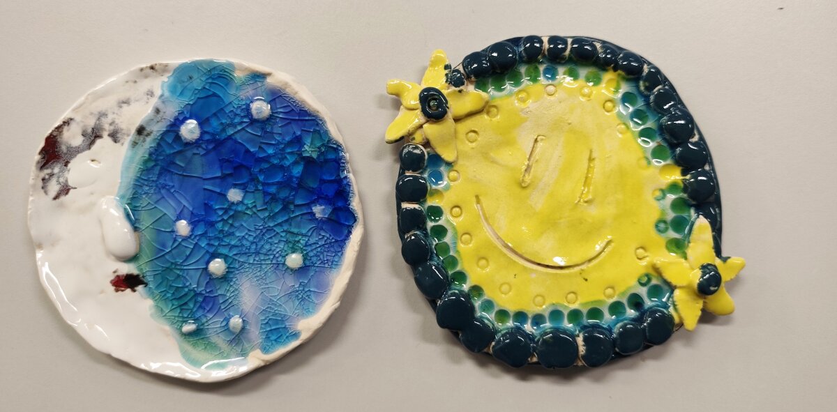 Ypač jiems patinka dekoruoti savo kūrinius spalvotais stikliukais: krosnyje, įkaitintoje iki 1000 laipsnių, stiklas išsilydo ir padengia paviršių žvilgančiu, netikėtai suskeldėjusiu raštu. Rezultatas kiekvieną kartą vis kitoks ir visada nustebinantis. Keramika padeda vaikams lavinti vaizduotę, kantrybę ir patirti kūrybos džiaugsmą.