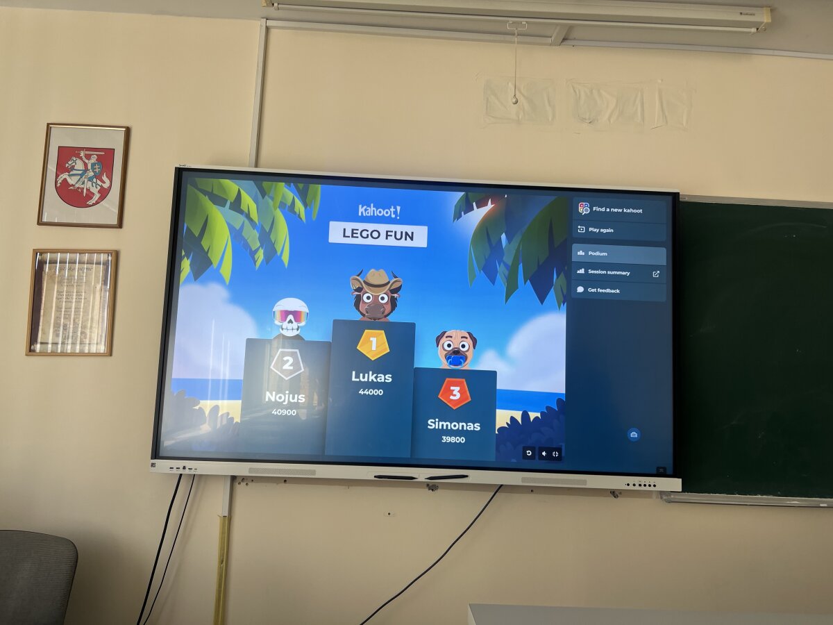 Užsiėmimų pabaigoje mokiniai dalyvavo smagioje viktorinoje apie LEGO, kurioje pasitikrino įgytas žinias, prisiminė įdomiausius faktus ir pasidžiaugė savo pasiekimais.