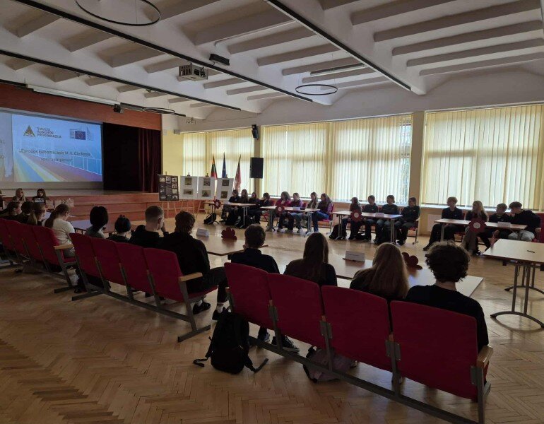 Rugsėjo 25 d. Šiaulių „Romuvos“ progimnazijoje vyko integruotas renginys „Europos kalbomis apie M. K. Čiurlionio spalvas ir garsus“, skirtas Europos kalbų dienai ir Mikalojaus Konstantino Čiurlionio 150-osioms gimimo metinėms paminėti. Mūsų progimnazijai atstovavo 7c ir 8c klasių mokinių komanda: Neidas Simanauskis, Dominykas Stuknys, Liudas Pikūnas bei Justė Aleksandravičiūtė.