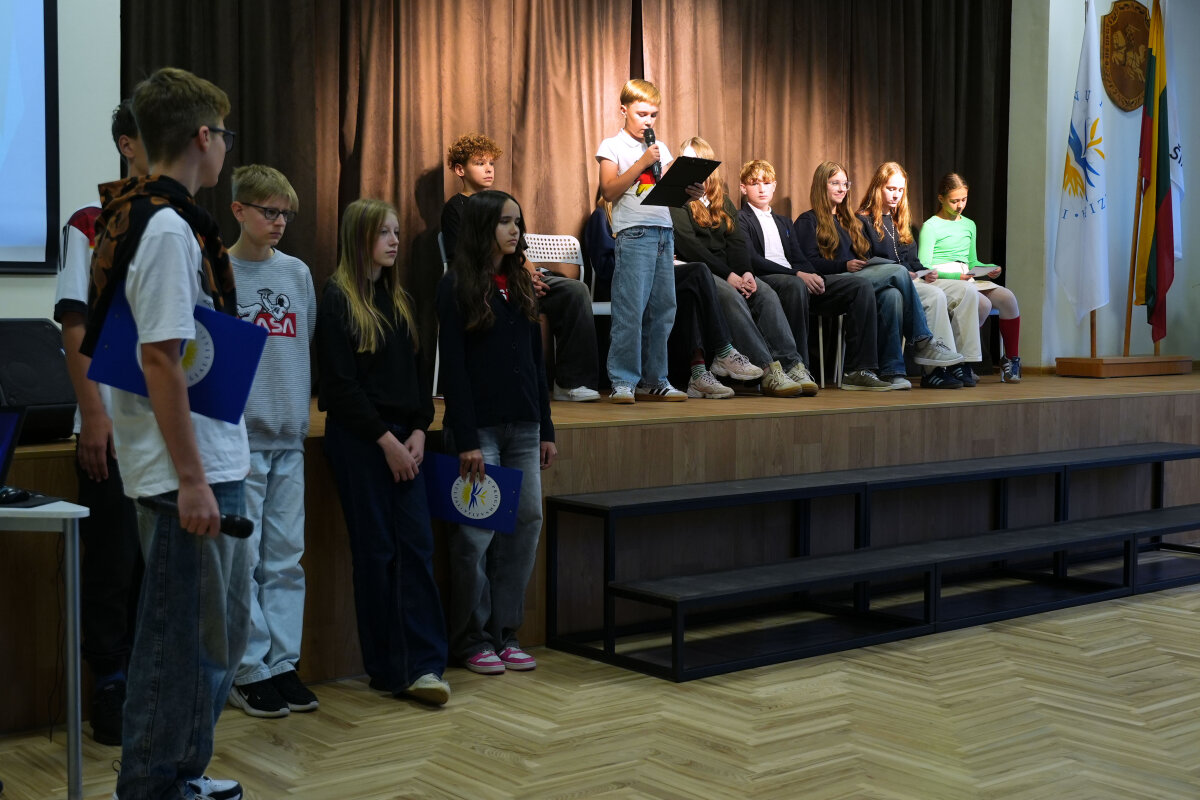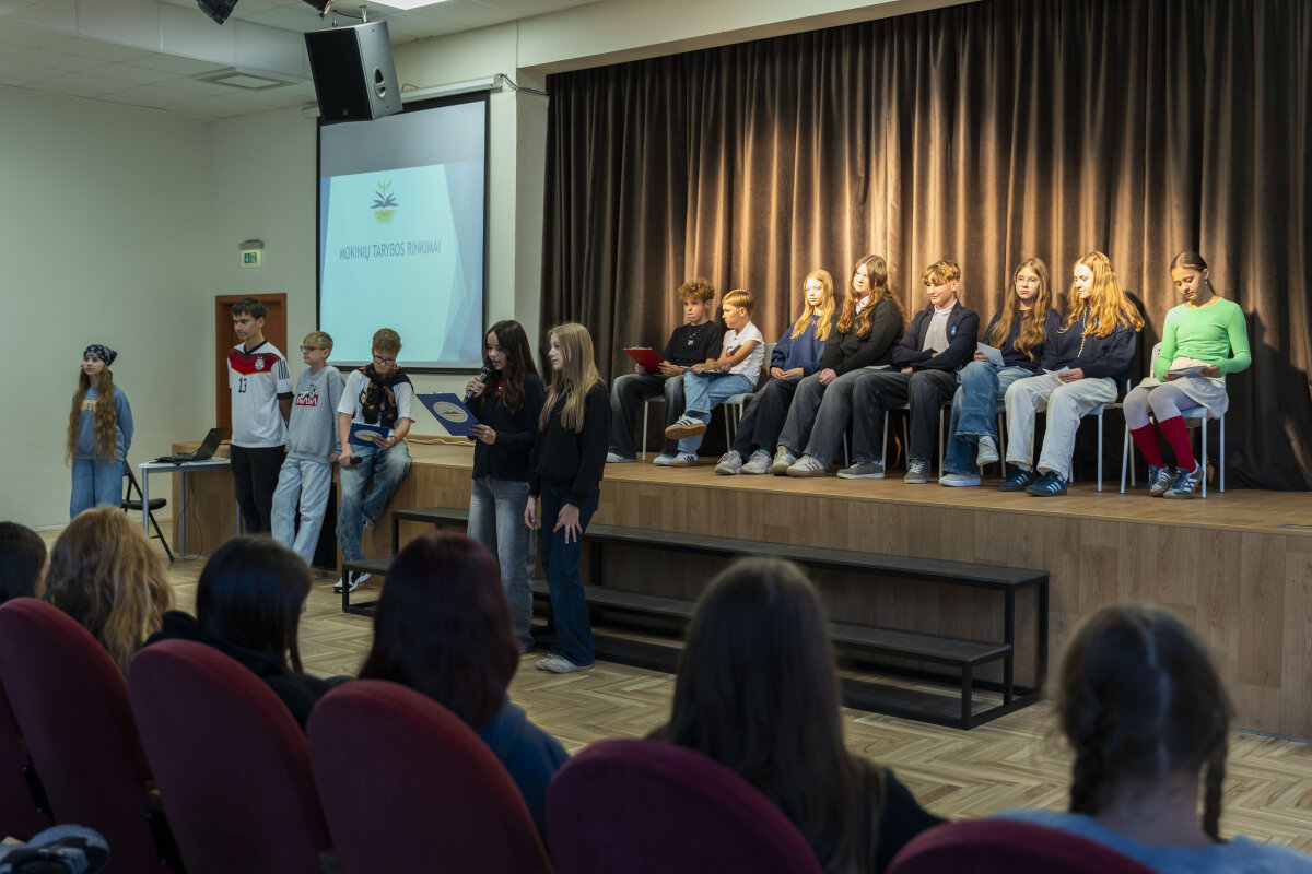 2025 m. rugsėjo 26 d. progimnazijoje vyko Mokinių tarybos rinkimai – tikra jaunųjų lyderių šventė. Dvi savaites prieš rinkimus kandidatai aktyviai viešino savo idėjas, kūrė plakatus ir drąsiai stojo prieš bendruomenę pristatydami savo vizijas. Tai buvo ne tik konkurencija dėl balsų, bet ir praktinė lyderystės pamoka: mokiniai mokėsi atsakingai komunikuoti, planuoti veiklas ir įkvėpti kitus.