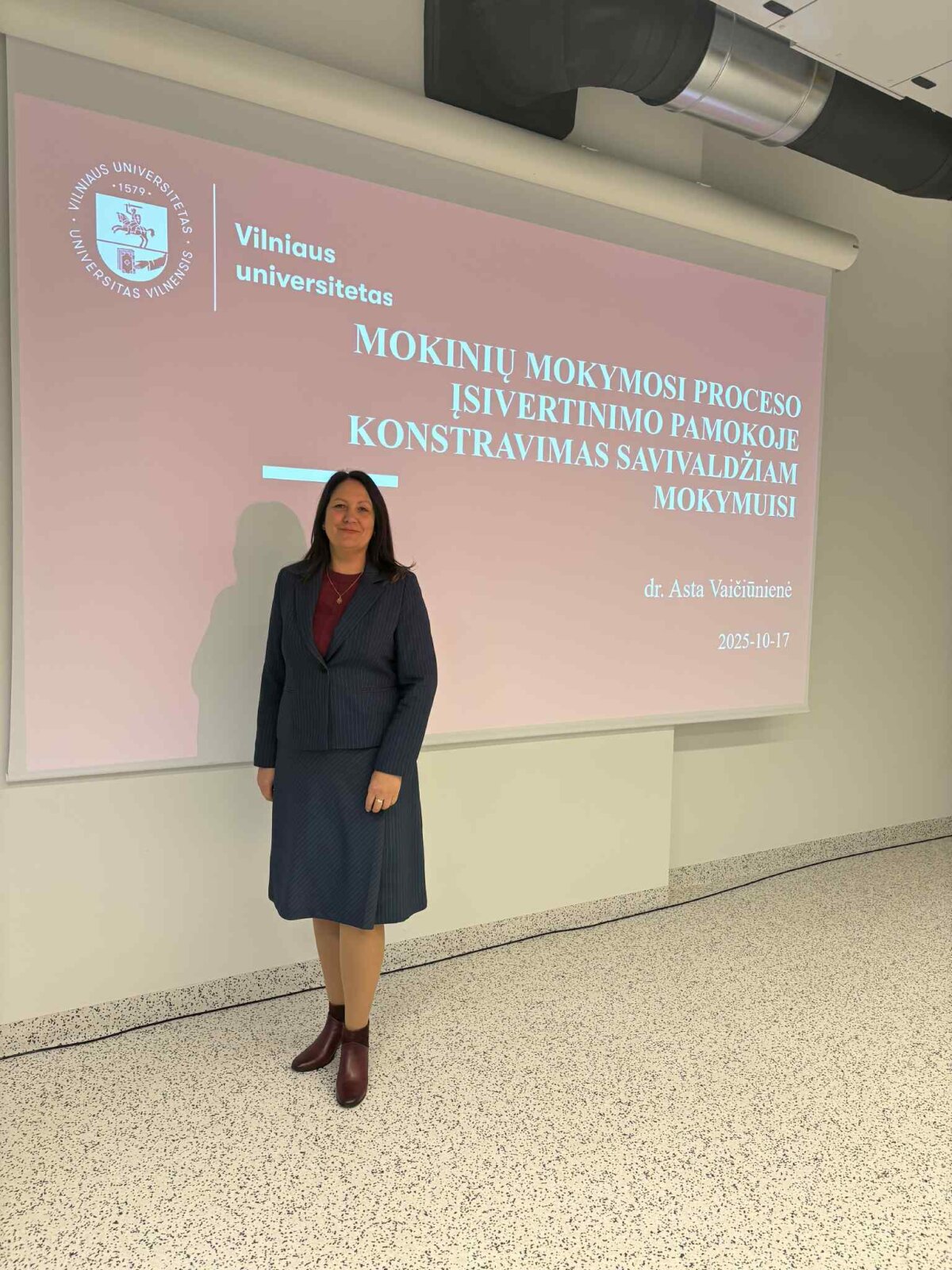 Direktorė dr. Asta Vaičiūnienė, pristatydama pranešimą „Mokinių mokymosi proceso įsivertinimo pamokoje konstravimas savivaldžiam mokymuisi“, išryškino Šiaulių Dainų progimnazijos mokinio įsivertinimo pamokoje modelio „Noriu, žinau, pritaikau“ vertę ir aktualumą inovatyvioje mokykloje.