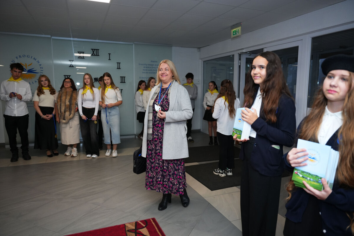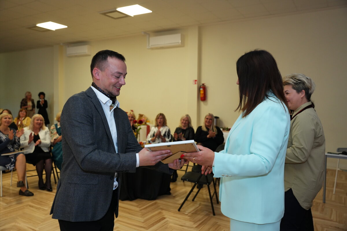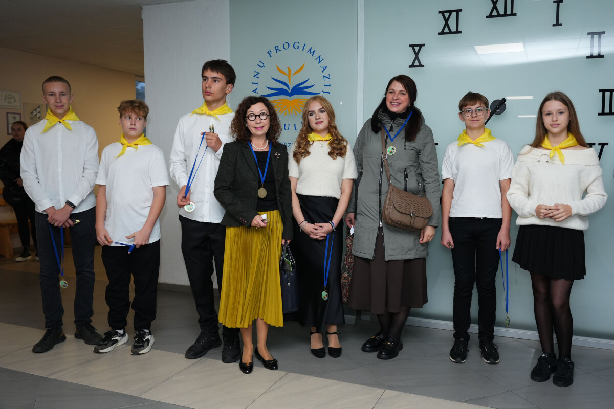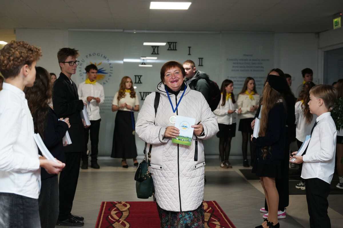 Progimnazijos direktorė Asta Vaičiūnienė pasveikino visus mokytojus, įteikdama padėkas ir dėkodama už jų ištvermę, profesionalumą, kūrybiškumą ir gebėjimą kiekviename mokinyje įžvelgti potencialą. Ji pabrėžė, kad mokytojo darbas – tai pašaukimas, kuris keičia gyvenimus, o mokytojo įkvėpimas gali tapti pradžia didžiausių svajonių ir pasiekimų.