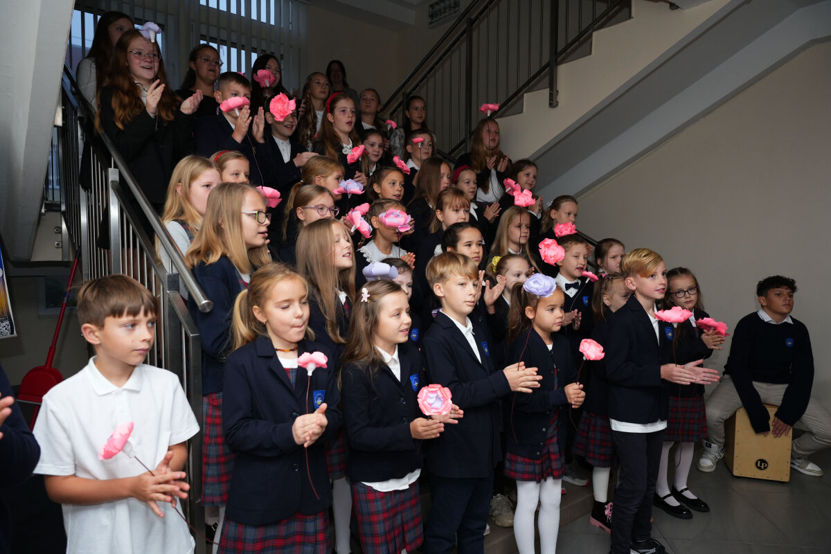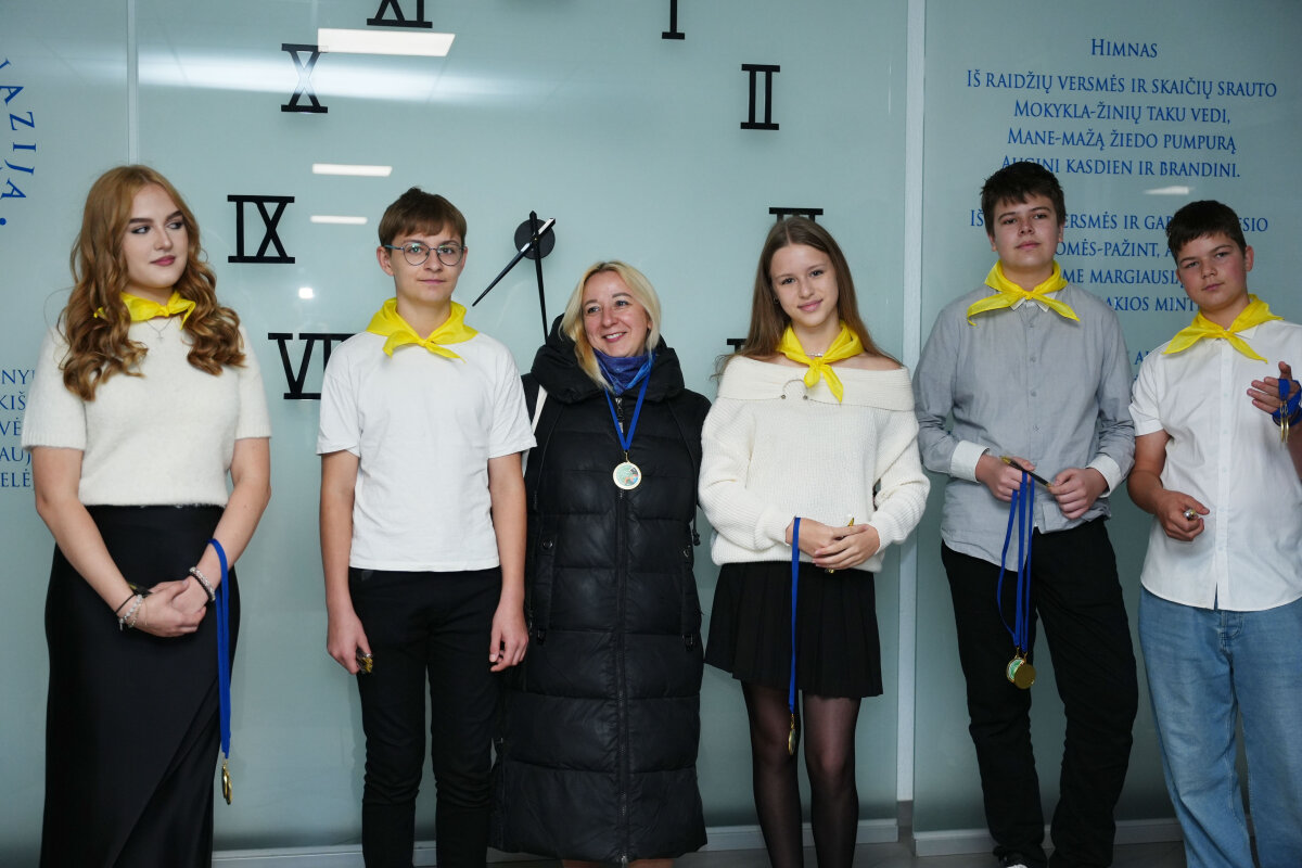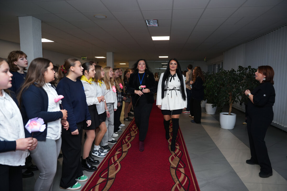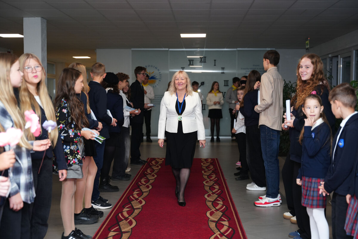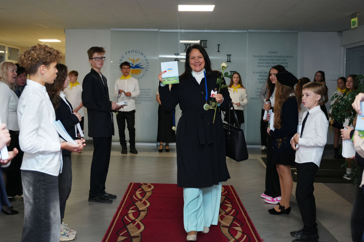 Ankstyvą 2025 m. spalio 3 dienos rytą, vos tik peržengę mokyklos slenkstį, mokytojai buvo sutikti iškilmingai – raudonu kilimu, skambant muzikai ir lydimi mokinių šypsenų. Mokiniai dovanojo gėles, simbolines dovanėles, o svarbiausia – šiltus žodžius, dainas ir padėkos kupinus žvilgsnius. Kiekviena akimirka spinduliavo pagarba ir dėkingumu už nelengvą, bet be galo prasmingą mokytojo darbą.