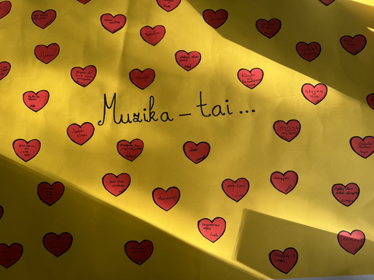 6c klasės mokiniai išreiškė savo mintis kūrybiškai – ant didelio plakato su užrašu „Muzika – tai…“ jie rašė savo mintis ir jausmus. Atsirado daugybė nuoširdžių atsakymų: „Muzika – draugystė“, „Muzika – meilė“, „Muzika – ramybė“, „Muzika – laisvė“, „Muzika – laikas su savimi“.