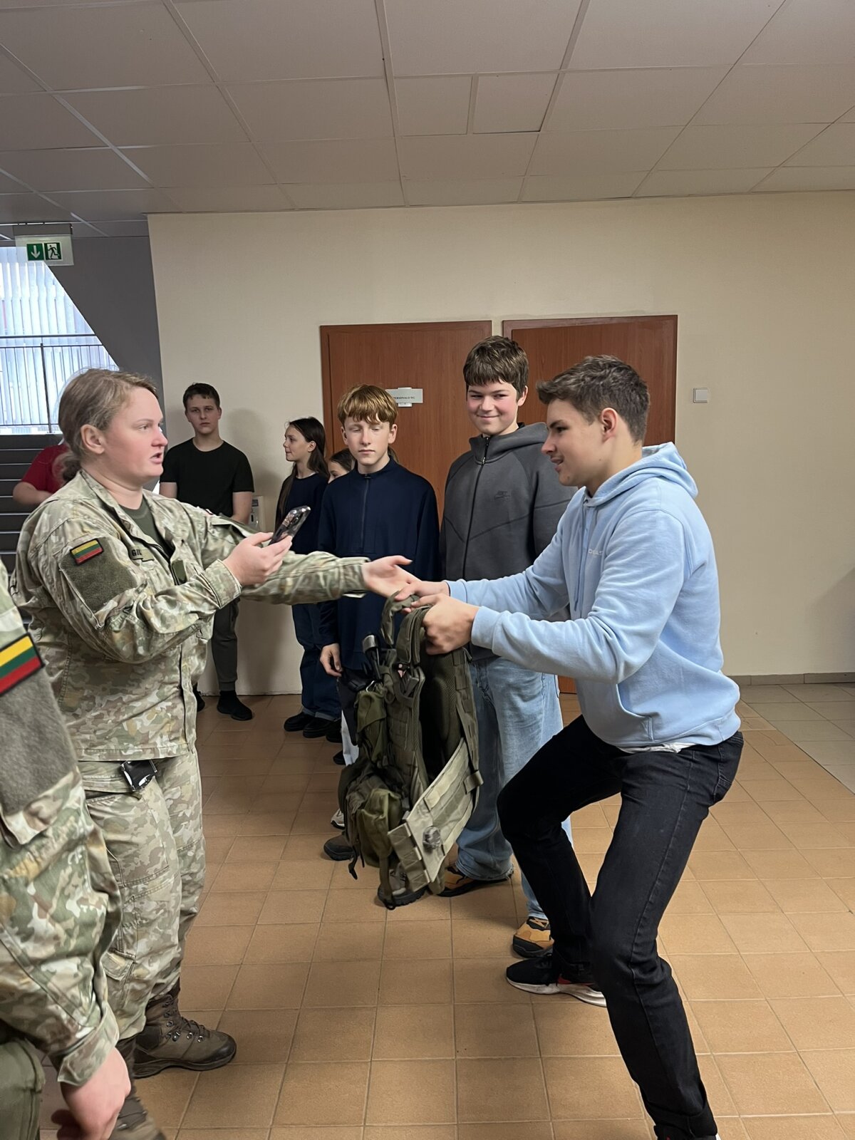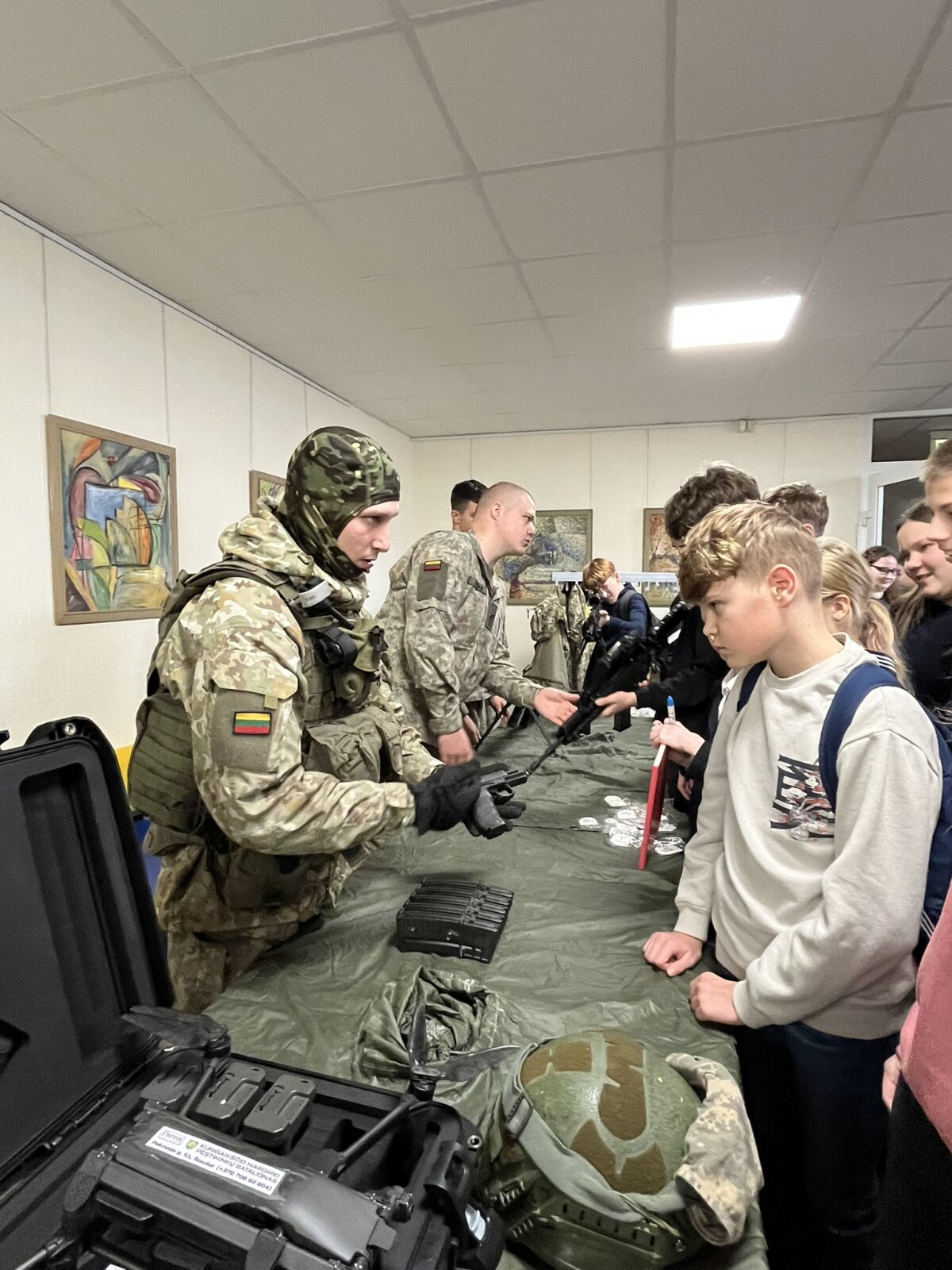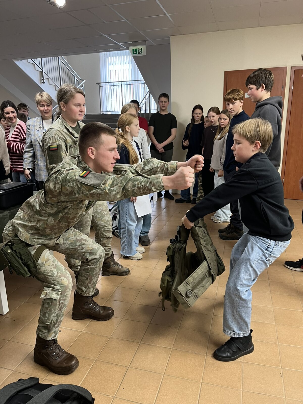 Mokiniai sužinojo, kaip organizuojama krašto gynyba, kokios tarnybos galimybės laukia jaunuolių, kuo skiriasi šauktinių, savanoriška ir profesinė tarnyba. Tai buvo puiki proga iš arčiau susipažinti su kario profesija – jos atsakomybe, vertybėmis ir kasdieniais sprendimais.