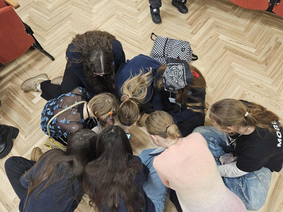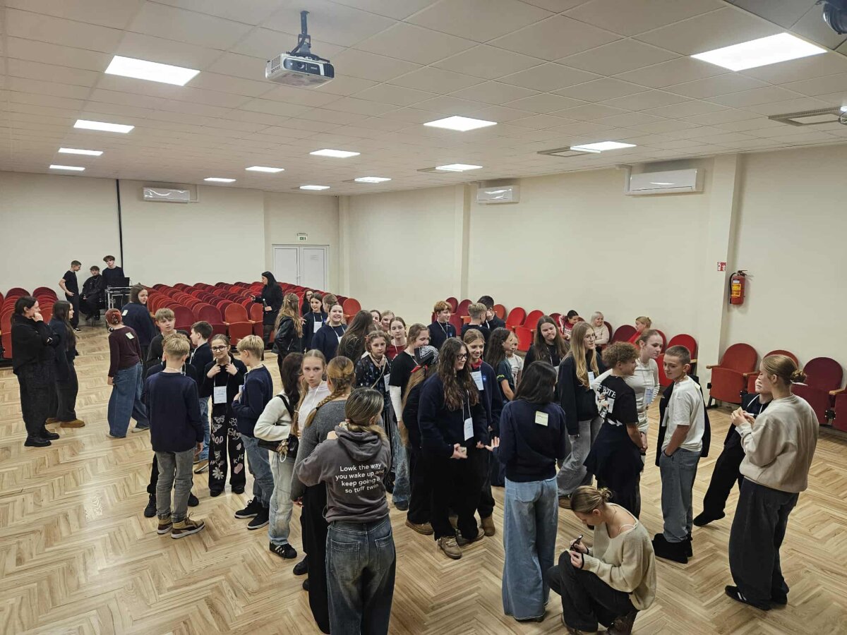 Vėliau prasidėjęs „Ledlaužio“ užsiėmimas tapo puikia proga atsipalaiduoti ir labiau pažinti vieniems kitus. Čia netrūko juoko, šūksnių ir nuoširdžių reakcijų – mokiniai drąsiai įsitraukė, išbandė netikėtas užduotis, padėjo vieni kitiems. Kūrybiškumas ir komandiškumas atsiskleidė visu gražumu: mokiniai šypsojosi, palaikė draugus ir džiaugėsi, kai pavykdavo įveikti užduotį.