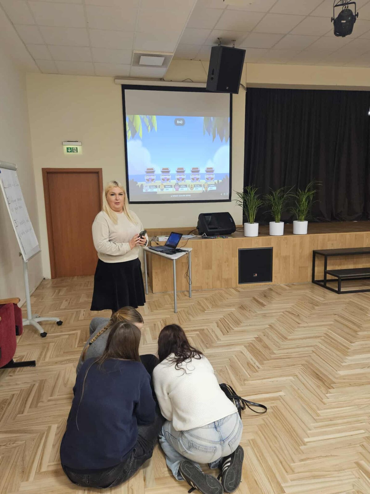 Kitas renginio etapas – „Kahoot!“ žaidimas – įnešė sveikos konkurencijos ir azarto. Vaikų akys sužibo iš jaudulio, kai ekrane pasirodydavo naujas klausimas. Kiekvienas teisingas atsakymas sukeldavo plojimus ir draugų palaikymo šūksnius. Mokiniai ne tik rungėsi, bet ir džiaugėsi vieni kitų sėkme, rodydami brandų komandinį požiūrį.