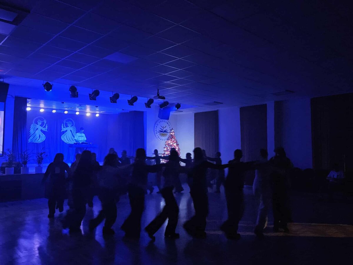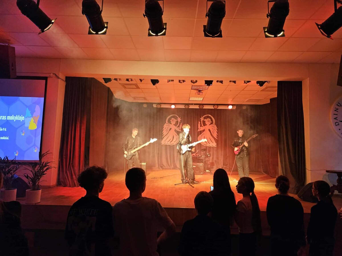 Vakaro pabaigoje įvyko energingas Dainų progimnazijos muzikos grupės „De Capo“ koncertas, išjudinęs visus dalyvius. Mokiniai šoko, dainavo, sukosi šviesų ritmu – jų akyse spindėjo džiaugsmas, o veidus puošė plačios šypsenos. Tai buvo akimirka, kai visi pasijuto esantys viena didelė bendruomenė.