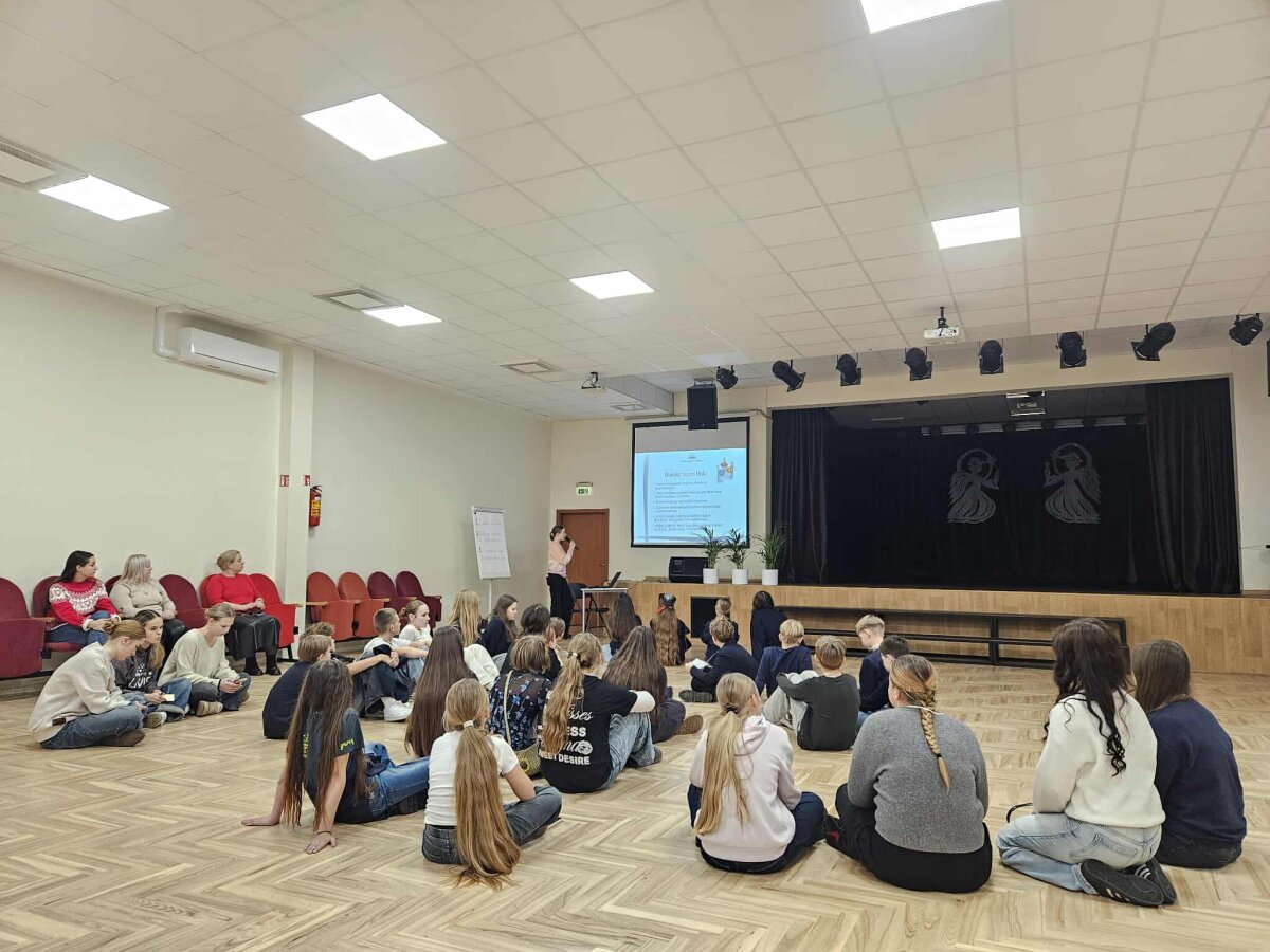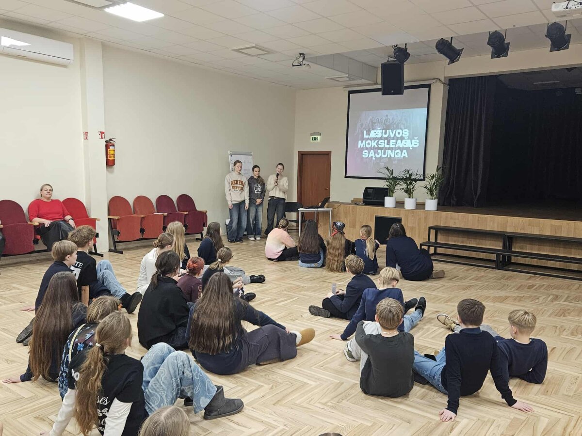 Po dalyvių registracijos prasidėjo oficialioji dalis – Mokinių tarybos ir Lietuvos moksleivių sąjungos pristatymas. Ši dalis ypač svarbi, nes suteikia mokiniams galimybę iš arti pamatyti, kaip jie patys gali inicijuoti pokyčius, telkti bendraamžius, kurti projektus ir aktyviai dalyvauti mokyklos gyvenime, skatinant lyderystę ir atsakomybę.