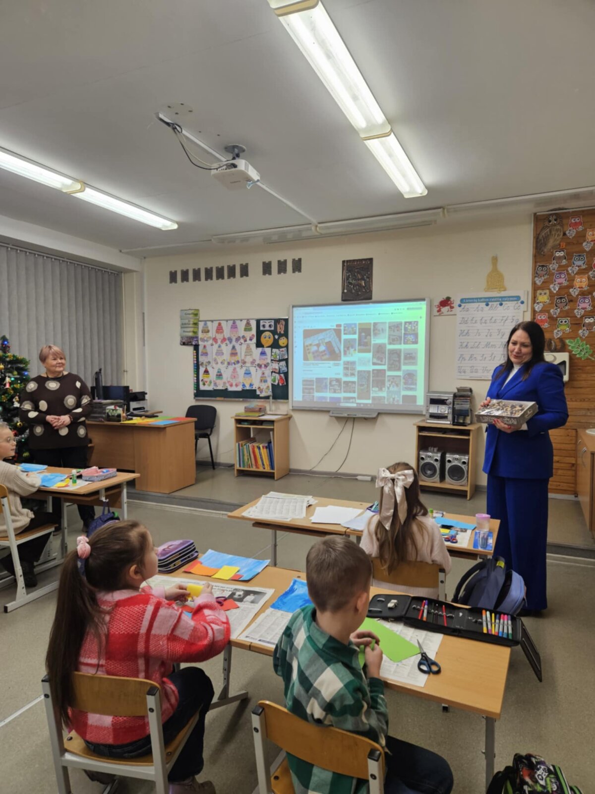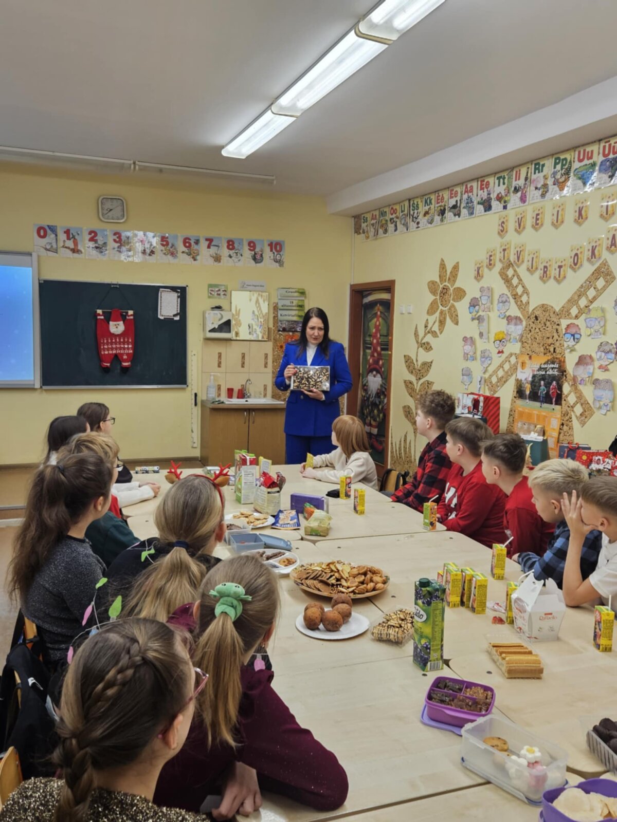 Dainų progimnazijos direktorė Asta Vaičiūnienė užsuko į mokinių klases, atnešdama su savimi šventinę nuotaiką. Ji nuoširdžiai pabendravo su mokiniais, pradžiugino juos saldžiomis dovanomis ir palinkėjo, kad artėjančios Kalėdos būtų kupinos šilumos, džiaugsmo ir mažų stebuklų.