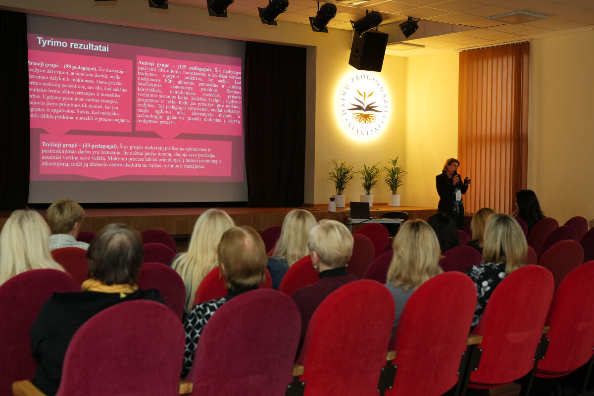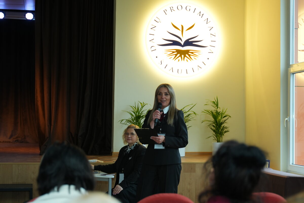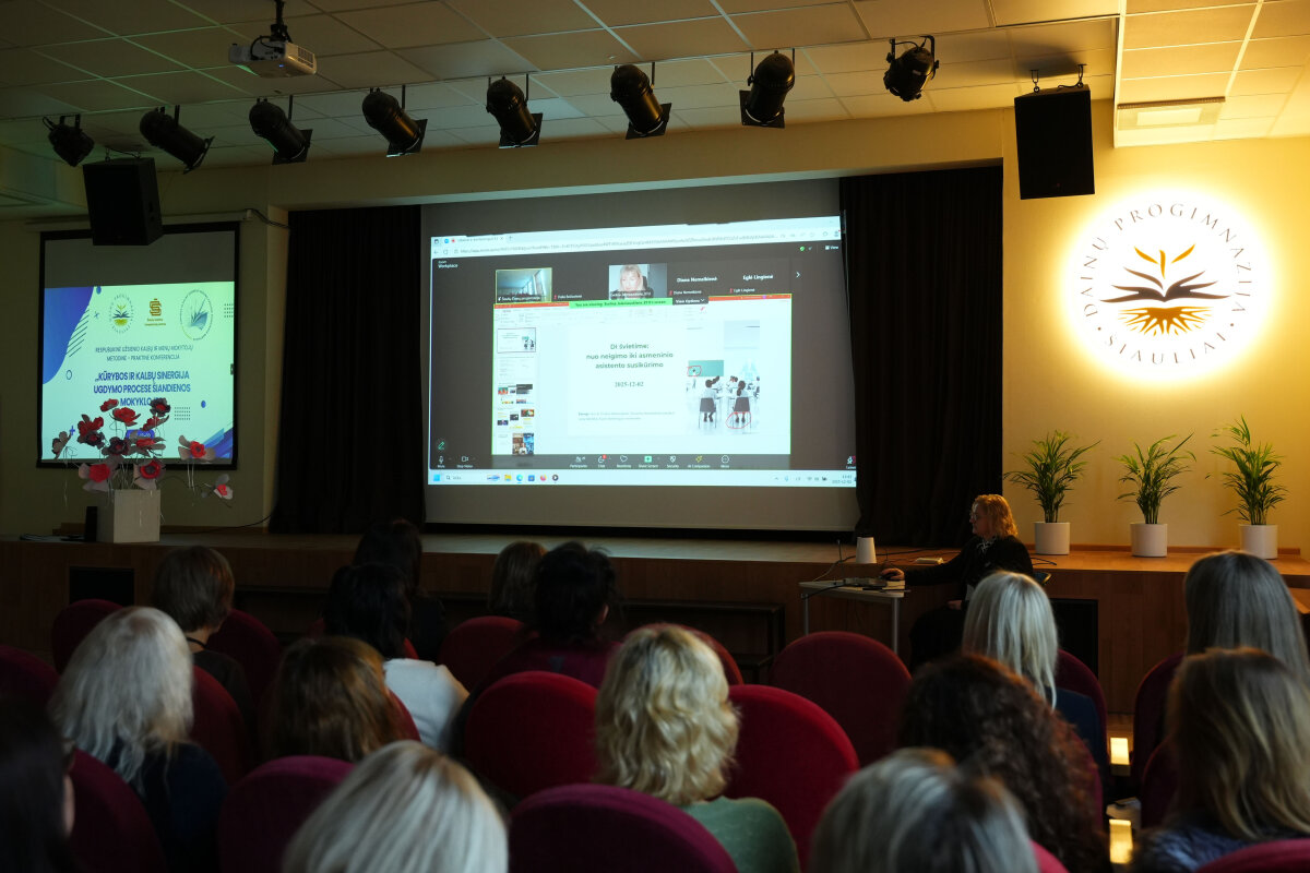 Renginys prasidėjo įkvepiančiais mokinių muzikiniais pasirodymais, harmoningai susietais su konferencijos tematika. Šiaulių Dainų progimnazijos 4e klasės mokinė Barbora atliko dainą ispanų kalba „Super Ultra Mega “, o 3c klasės mokiniai žaismingai ir išradingai pristatė kalėdinę kūno perkusiją (mokinius parengė muzikos mokytoja ekspertė Rūta Stanislava Balsė). Šiaulių Dainų progimnazijos direktorė dr. Asta Vaičiūnienė sveikindama dalyvius pabrėžė švietimo bendruomenės bendradarbiavimo ir kūrybiškumo svarbą, akcentavo mokytojo vaidmens kaitą bei nuolatinio tobulėjimo poreikį. Plenarinio posėdžio metu buvo pristatyti trys teminiai pranešimai, išryškinę esmines šiuolaikinio ugdymo kryptis. Vilniaus universiteto Šiaulių akademijos profesorė Diana Strakšienė pranešime „Pedagogų profesinių tipažų raiška bendradarbiaujant su ugdymo proceso dalyviais“ kalbėjo apie skirtingų pedagogų profesinių tipų svarbą, jų poveikį bendravimui ir bendradarbiavimui su mokiniais bei kolegomis. Profesorė taip pat analizavo mokytojo asmenybės savybes, lemiančias ugdymo kokybę. Kauno technologijos universiteto mokslų daktarė Evelina Jaleniauskienė pranešime „DI švietime: nuo neigimo iki asmeninio asistento susikūrimo“ aptarė dirbtinio intelekto integraciją į mokyklos gyvenimą, pabrėždama, kad DI šiandien tampa natūraliu mokytojo veiklos partneriu, galinčiu palengvinti mokymo procesą, personalizuoti mokinių patirtis ir skatinti jų savarankiškumą. Trečiajame plenarinio posėdžio pranešime „Savivaldus mokymasis pamokoje: kaip ir kodėl?“ dr. Asta Vaičiūnienė dalijosi praktinėmis įžvalgomis apie savivaldaus mokymosi svarbą, mokytojo kaip mokymosi proceso koordinatoriaus vaidmenį ir metodus, padedančius mokiniams prisiimti atsakomybę už savo mokymąsi. Pranešime buvo pabrėžiama, kad savivaldus mokymasis negalimas be mokinio ir mokytojo bendrystėje vystomo įsivertinimo.
