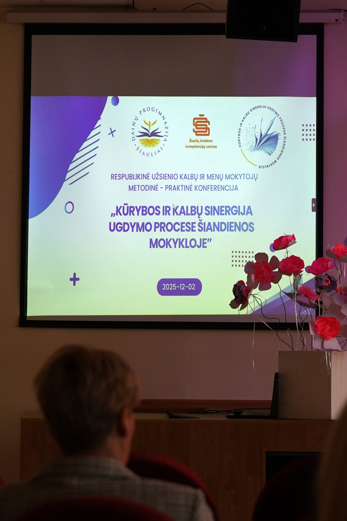 2025 m. gruodžio 2 d. Šiaulių Dainų progimnazijoje vyko respublikinė užsienio kalbų ir menų mokytojų mišri (kontaktinė ir nuotolinė) metodinė–praktinė konferencija „Kūrybos ir kalbų sinergija ugdymo procese šiandienos mokykloje“. Konferencija organizuota bendradarbiaujant kartu su Šiaulių švietimo kompetencijų centru. Renginys subūrė net 98 dalyvius iš įvairių Lietuvos ugdymo įstaigų, o konferencijos tikslas buvo skleisti aktualią metodinę patirtį, pristatyti inovatyvius kalbų ir meno integracijos modelius, aptarti šiuolaikinės mokyklos iššūkius ir ugdymo kaitos kryptis.