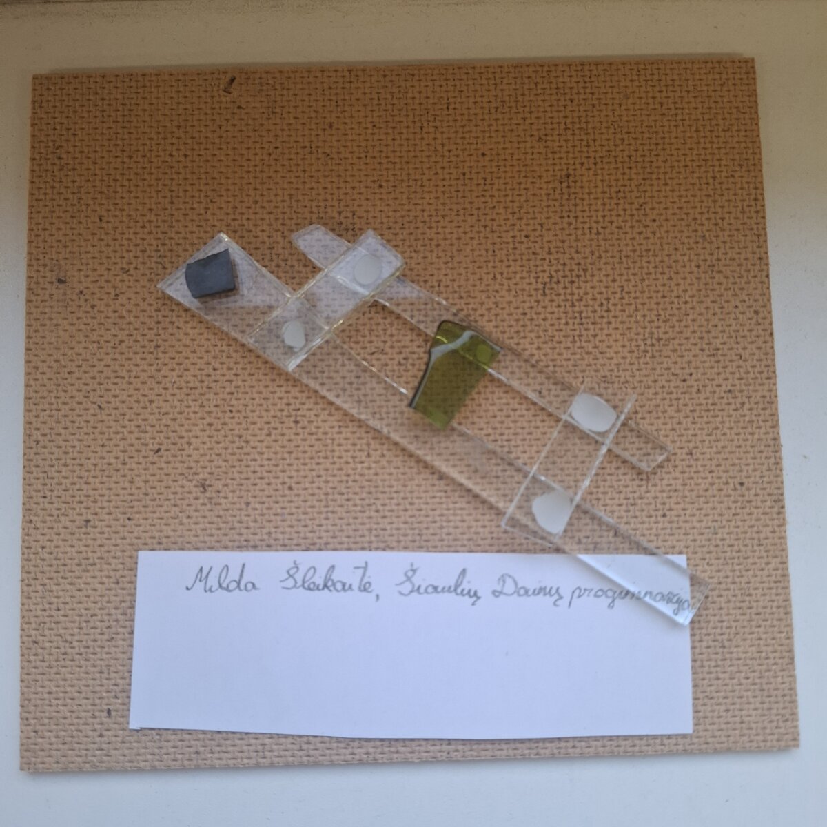 Ketvirtojoje grupėje mokiniai išbandė sudėtingesnę techniką ir iš stiklo kūrė dekoratyvinius paveikslėlius.