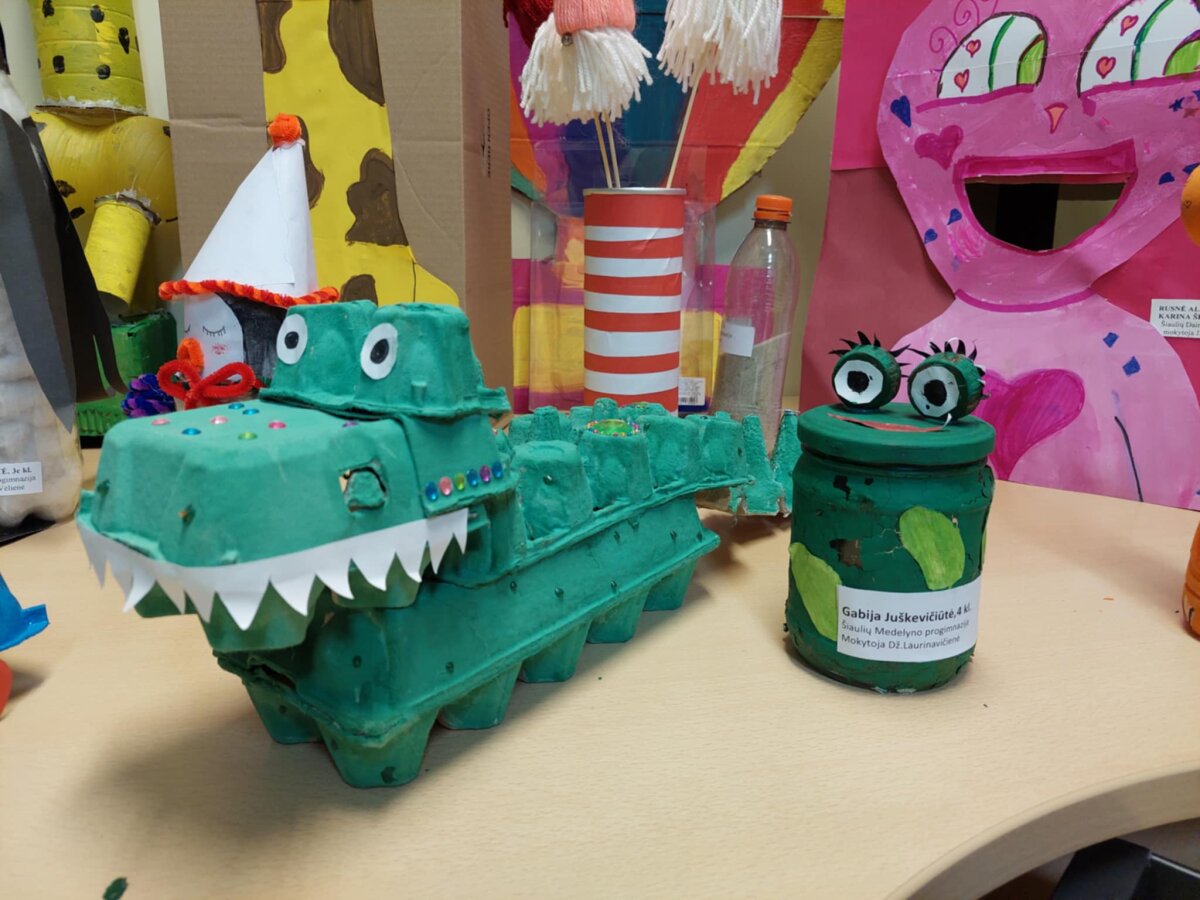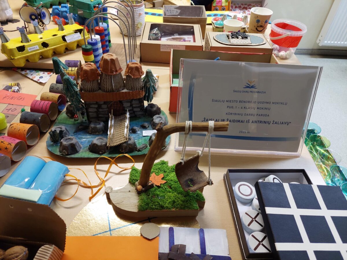 2025 m. lapkričio mėnesį Šiaulių miesto bendrojo ugdymo mokyklose vyko kūrybinės dirbtuvės, kuriose PUG ir 1–4 klasių mokiniai gamino žaislus bei žaidimus iš antrinių žaliavų.