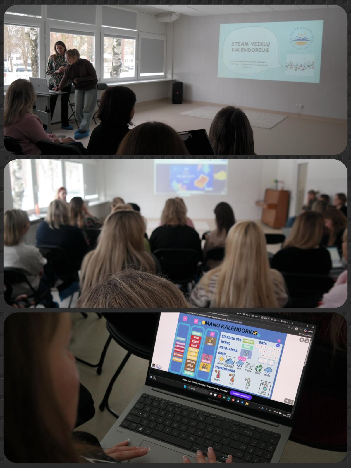 Priešmokyklinio ugdymo mokytojos Sandra Karaveckienė, Viktorija Citavičienė ir Juste Milašauskienė pristatė metodinę priemonę ,,STEAM veiklų kalendorius“