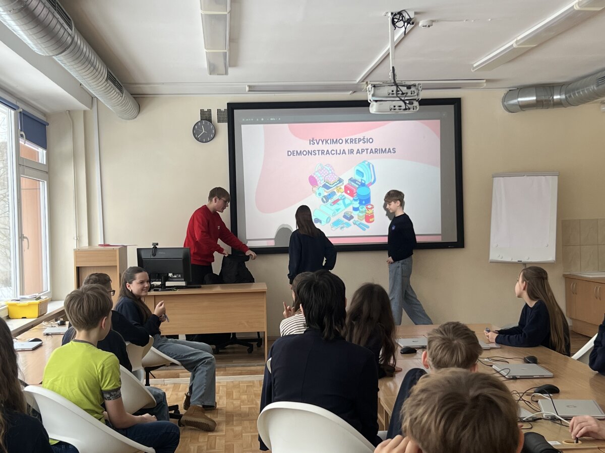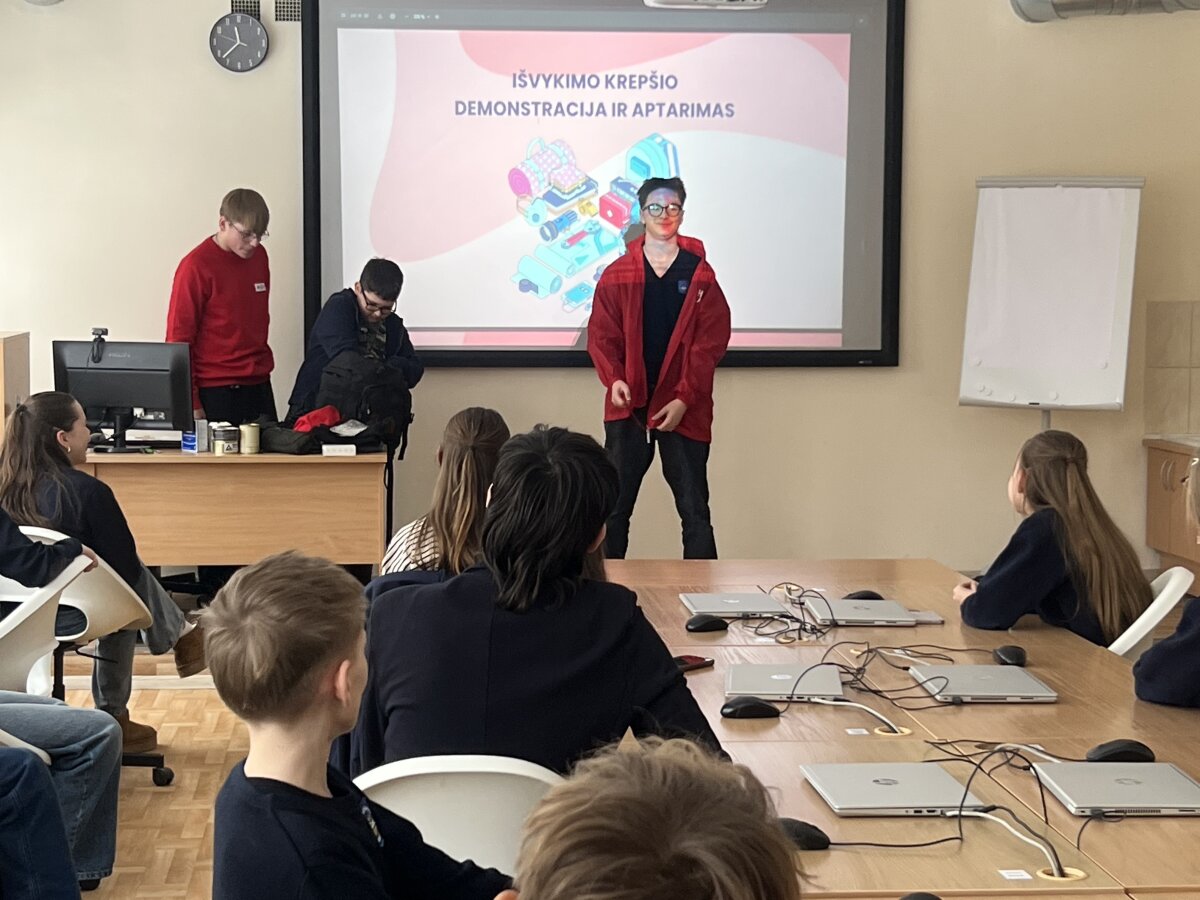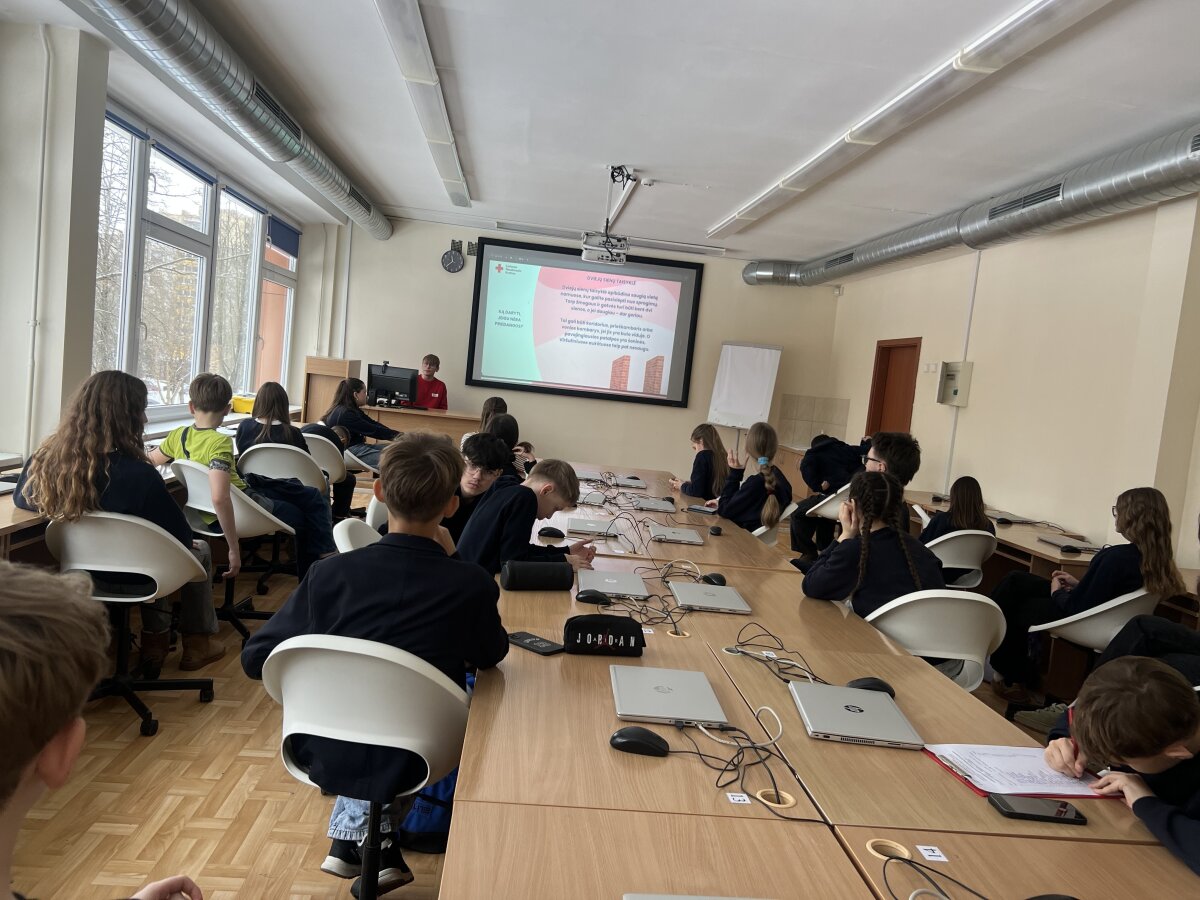 2026 m. vasario 24 d. 6D klasėje vyko integruota klasės valandėlės ir gyvenimo įgūdžių pamoka, kurios metu mokiniai gilino žinias apie pasirengimą ekstremalioms situacijoms. Pamokoje svečiavosi Raudonojo Kryžiaus savanoris Lukas iš Šiaulių „Romuvos“ progimnazijos.