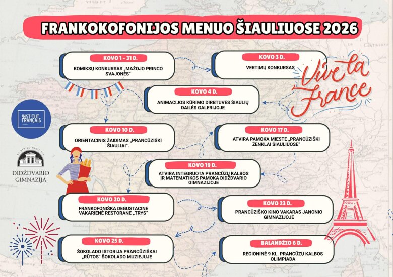 Ir besimokantys prancūzų kalbos, ir besidomintys prancūzų kultūra, kuri ypatinga savo istoriniu paveldu, meno įvairove ir pasauline įtaka, kovo mėnesį kviečiami švęsti Frankofoniją.