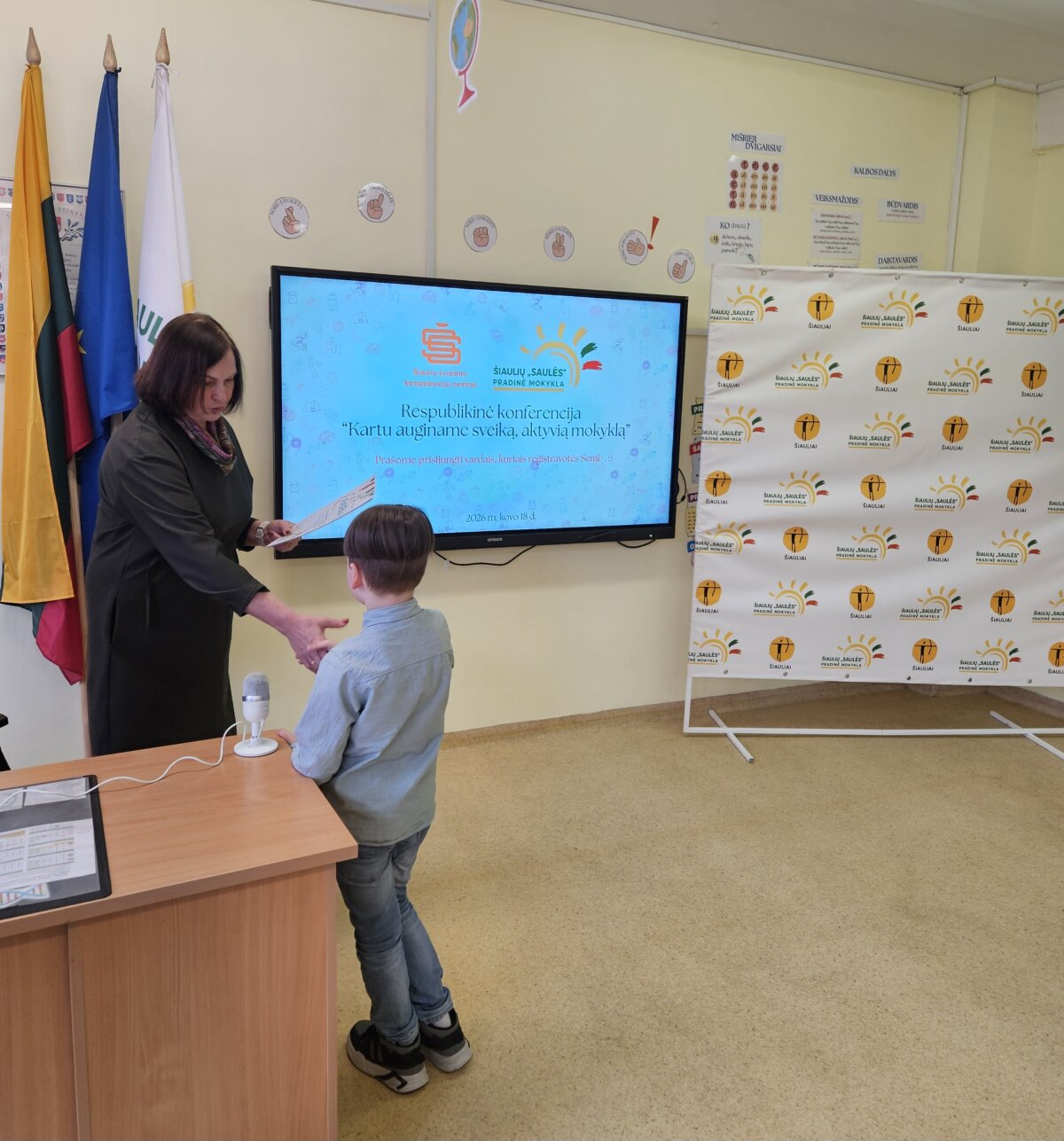 Kovo 18 d. Šiaulių „Saulės“ pradinėje mokykloje vyko hibridinė tarptautinė priešmokyklinio amžiaus vaikų ir pradinių klasių mokinių konferencija „Kartu auginame sveiką, aktyvią mokyklą“. Konferencijos metu buvo pristatytas pranešimas „Judėjimu grįstas vaikų ugdymas: praktinės patirtys“. Pranešimą parengė priešmokyklinio ugdymo pedagogė Inga Galvosienė ir vyr. priešmokyklinio ugdymo pedagogė Justė Milašauskienė , o konferencijos dalyviams jį pristatė PUG-2 grupės ugdytinis Augustas Piragis. Pristatymo metu buvo pasidalinta praktine patirtimi, kaip kasdienėje ugdymo veikloje taikomas judėjimu grįstas mokymas. Pabrėžta, kad aktyvus judėjimas yra neatsiejama vaikų ugdymo dalis – jis padeda stiprinti fizinę sveikatą, gerina emocinę savijautą, skatina vaikų smalsumą ir aktyvų įsitraukimą į veiklas. Pranešime buvo pristatytos įvairios sportinės ir judrios veiklos, kurios padeda supažindinti vaikus su aktyvaus gyvenimo būdo svarba, skatina fizinį aktyvumą bei formuoja sveikos gyvensenos įpročius. Taip pat akcentuota, kad bendros judrios veiklos ugdo vaikų komandinio darbo, bendravimo ir bendrystės įgūdžius. Dalyvavimas konferencijoje buvo puiki galimybė pasidalinti mokykloje taikomomis ugdymo praktikomis, pristatyti vaikų patirtis bei pasisemti naujų idėjų iš kitų Lietuvos ir užsienio mokyklų bendruomenių.