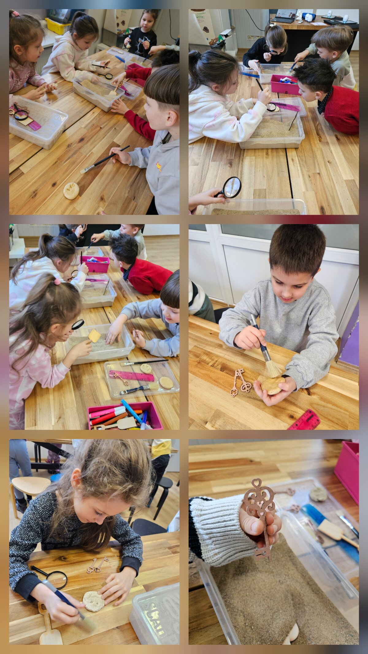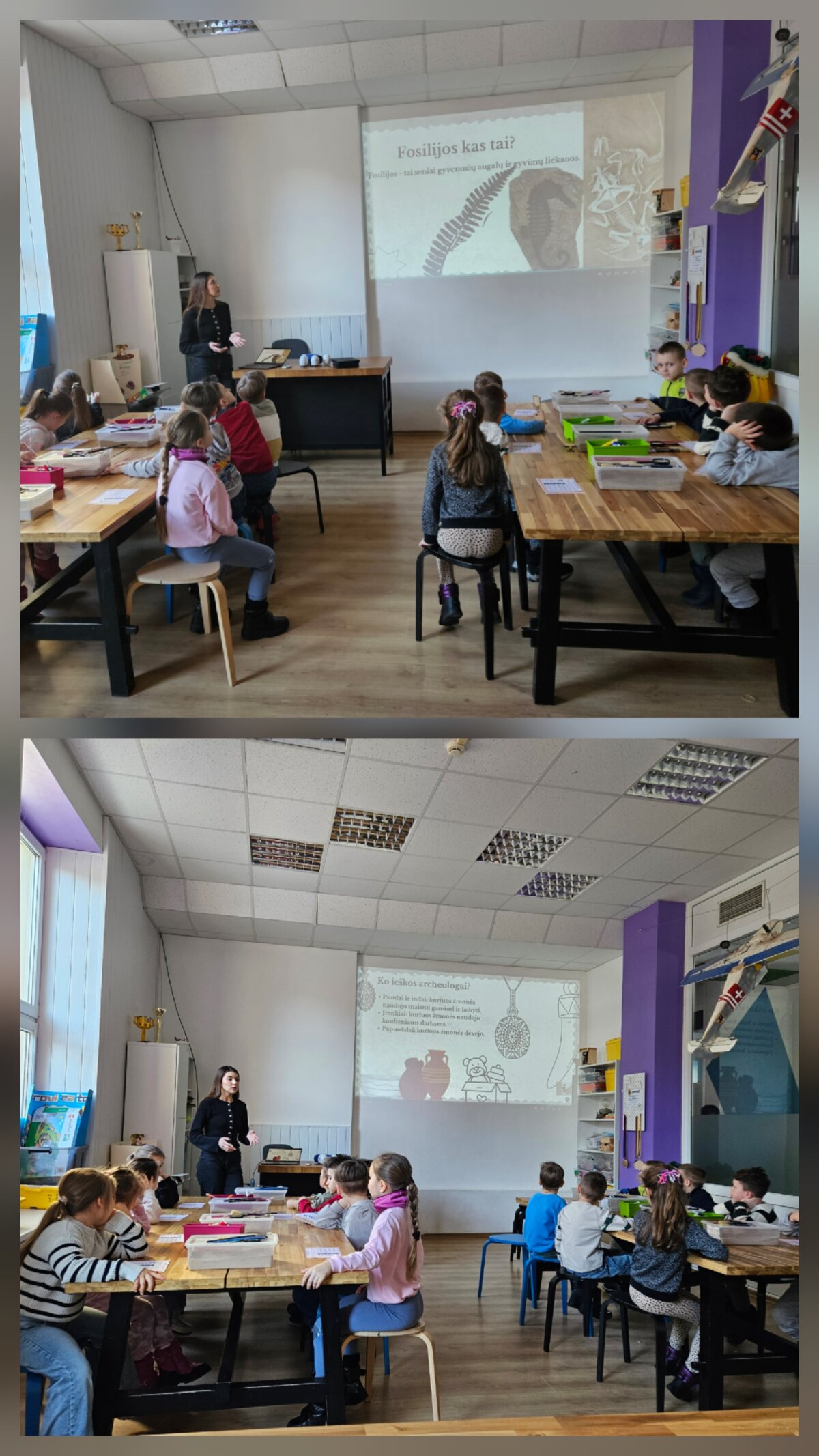 Užsiėmimo metu vaikai susipažino su archeologo ir paleontologo profesijomis, sužinojo, kaip randami ir tyrinėjami senovės radiniai, kokiais metodais nustatomas jų amžius ir paskirtis. Didžiausio susidomėjimo sulaukė praktinė veikla „kasinėjimai“, kuriuose ugdytiniai patys ieškojo „radinių“, juos matavo, lygino ir analizavo naudodami TTS mikroskopus. Tai leido iš arti patirti tyrėjo darbą ir suprasti, kad mokslas, ne tik teorija, bet ir nuoseklus tyrinėjimas.