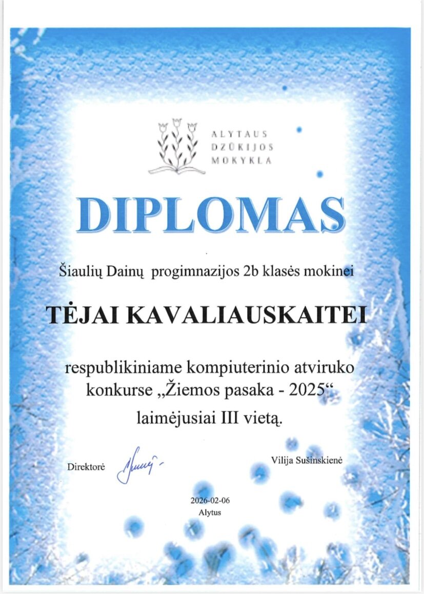 Respublikinio kompiuterinio atviruko konkurso „Žiemos pasaka – 2025“ laimėtoja