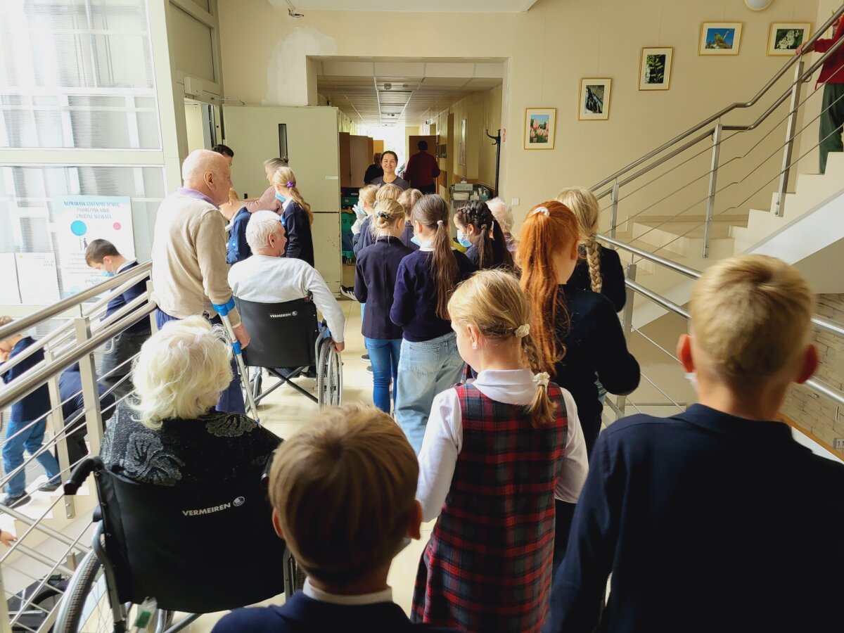 Trečiokai savo vizitą pradėjo trumpu ir jausmingu koncertu – skambėjo dainos ir muzikiniai kūriniai, nuo kurių ne vienam senoliui sudrėko akys. Vaikai šiai dienai ruošėsi iš anksto: sukūrė net 100 spalvingų atviručių, skirtų Tarptautinei pagyvenusių žmonių dienai. Jas mokiniai įteikė centro ligoniams ir sulaukė nuoširdžių padėkos žodžių. Vėliau visi kartu vaišinosi arbata bei saldumynais.