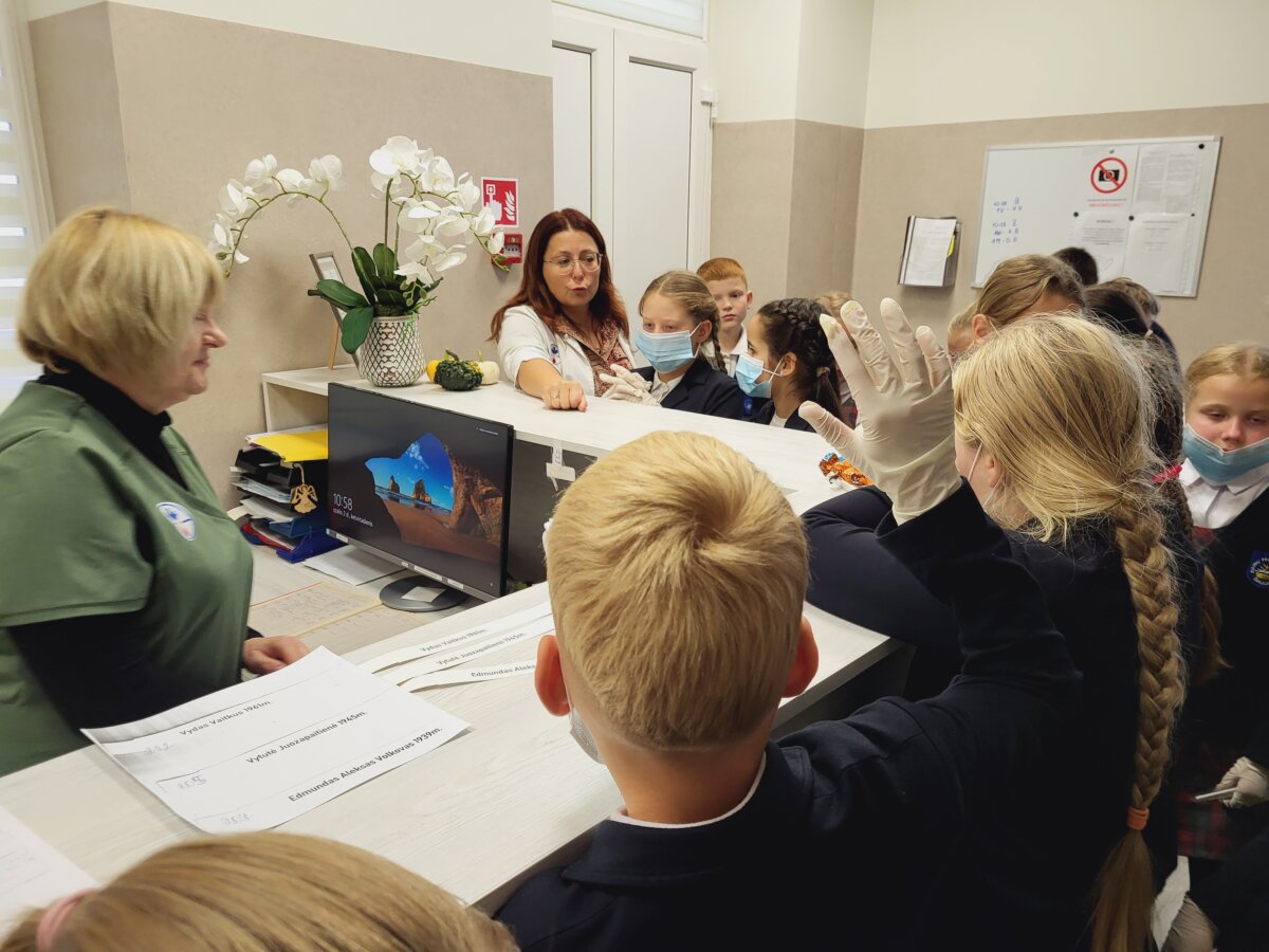 Po šilto bendravimo vaikai leidosi į pažintinę kelionę po centrą: aplankė priėmimo ir konsultacijų skyrių, vaistų ruošimo bei maisto skirstymo patalpas, sporto salę, susipažino su centro darbuotojais – socialine darbuotoja Vitalija Bertuliene, vyresniuoju slaugytoju Gintaru Buividu, kineziterapeutėmis Lina Grakauskiene, Sandra Kardašiene, Indre Ivanauskiene bei bendrosios praktikos slaugytoju Margiriu Smirnovu. Trečiokai uždavinėjo klausimus ir sužinojo, kokia svarbi yra slaugytojo, kineziterapeuto ir socialinio darbuotojo profesija visuomenei.