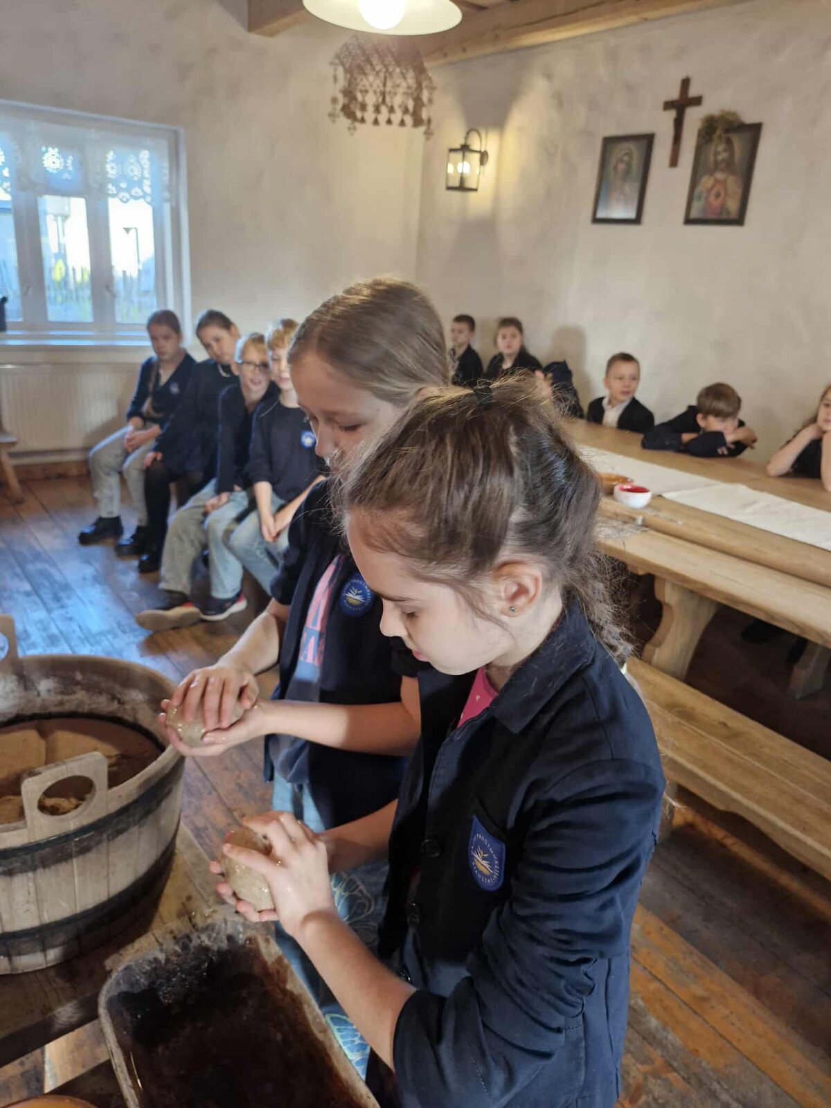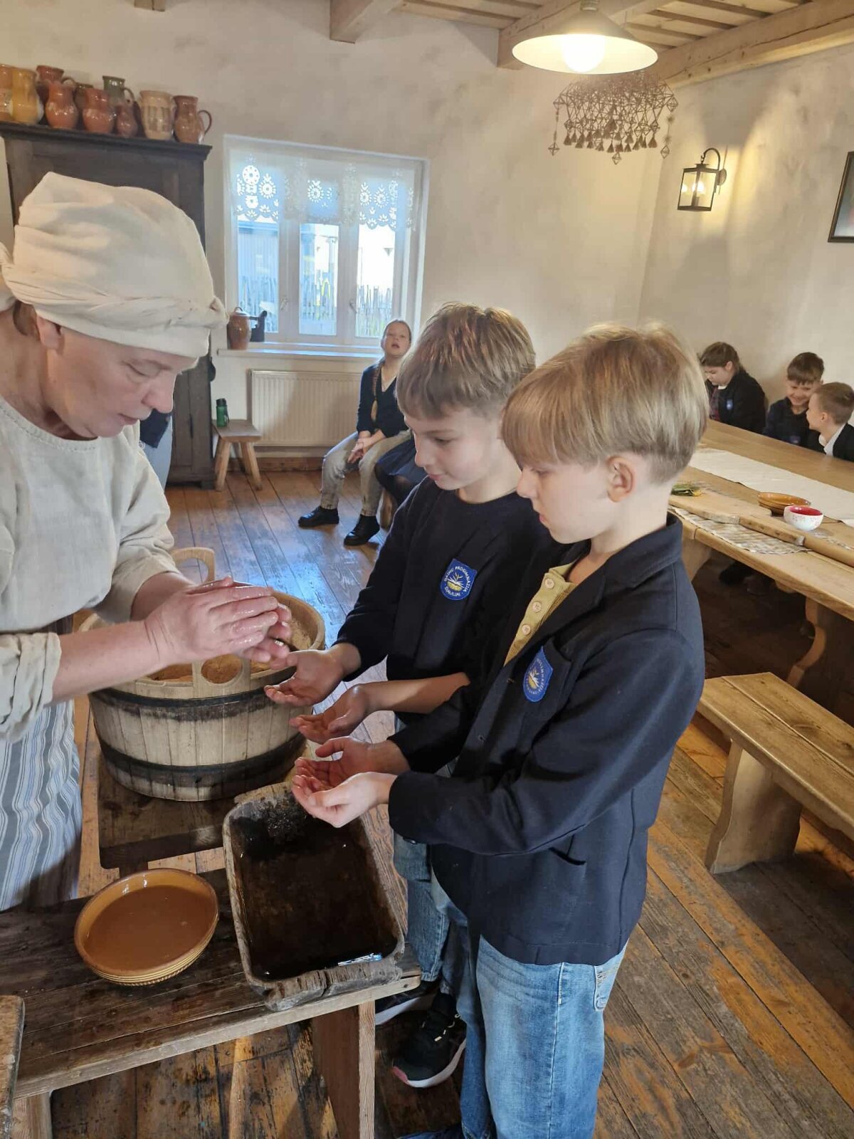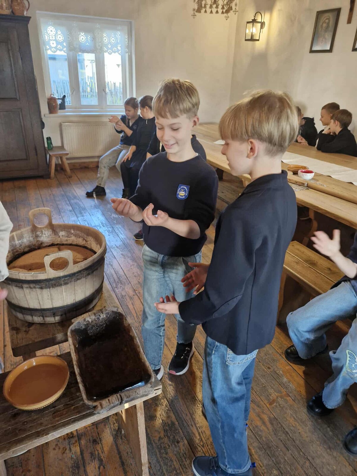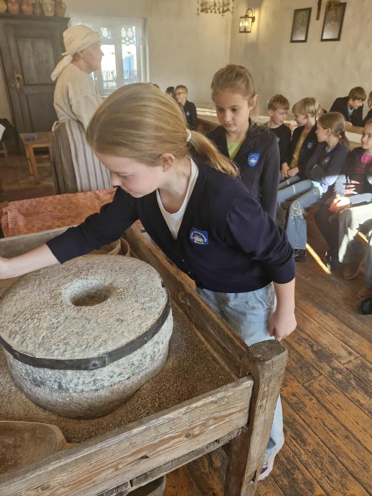 Dainų progimnazijos 3b klasės mokiniai lapkričio 18 dieną dalyvavo duonos kepimo STEAM pamokoje - edukacijoje Žaliūkių malūnininko sodyboje. Trečiokus priėmė maloni šventiškai nusiteikusi šeimininkė. Vaikai išgirdo nuoseklų pasakojimą apie sunkų duonos kelią nuo sėjos iki balta staltiese užtiesto stalo. Jie, susėdę prie karščiu alsuojančios krosnies, sužinojo valstiečių buityje gyvavusias duonos kepimo tradicijas, papročius ir ritualus. Trečiokai patys malė grūdus girnomis, formavo duonelės kepalėlį, o savo šviežiai iškeptą duonelę parsinešė namo.