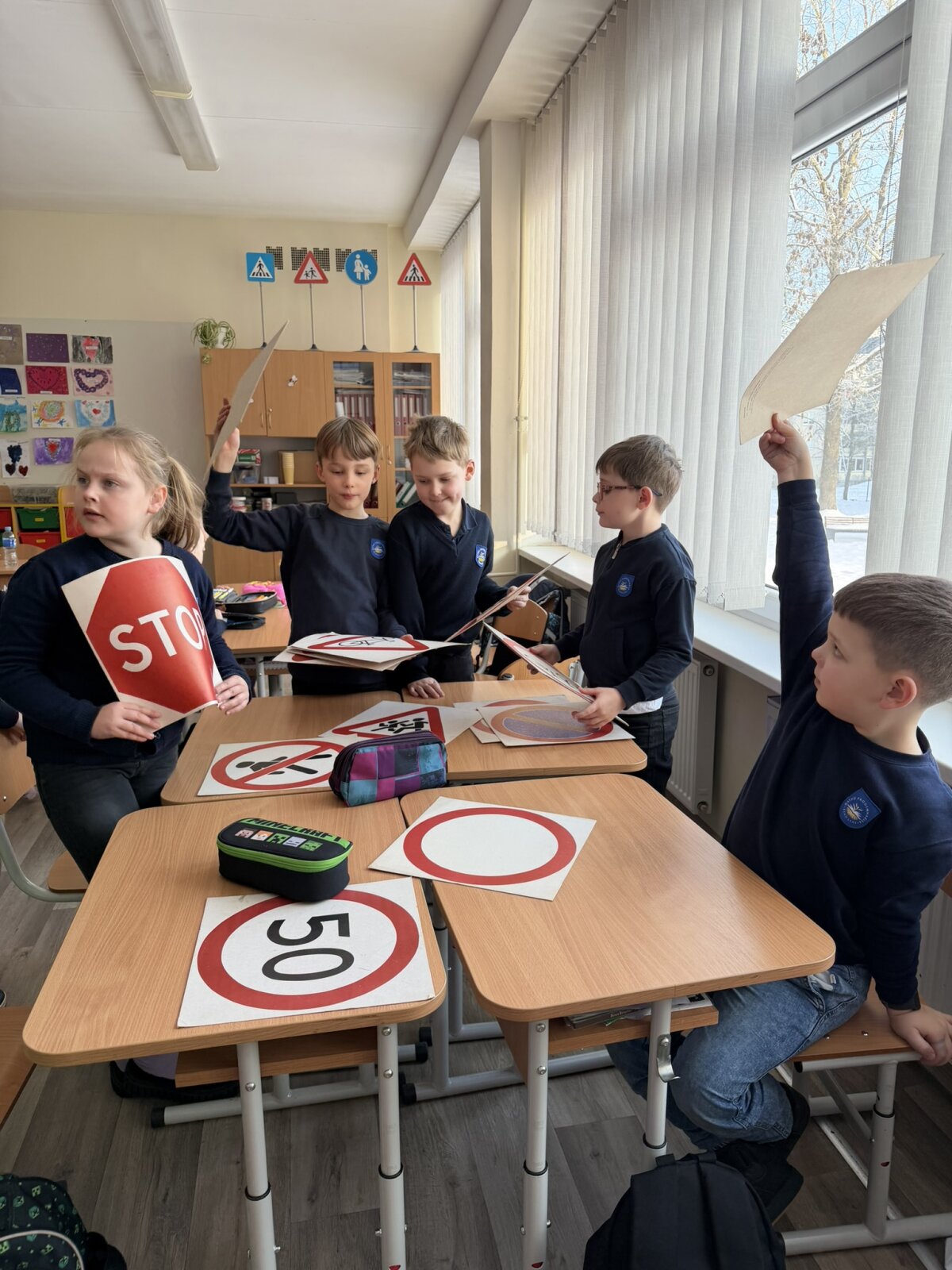 Saugaus eismo būrelyje „Šviesoforiukas“ mokiniai sužino įdomių faktų iš saugaus eismo kūrimo istorijos, mokosi pagrindinių kelių eismo taisyklių reikalavimų, kelio ženklų, kuriuos turi žinoti pradinukai. Vaikai susipažįsta su saugaus eismo priemonėmis, pratinasi laiku pastebėti ir įvertinti pavojaus šaltinius, numatyti elgesio pasekmes. Ugdosi atsakomybę už savo ir aplinkinių saugumą kelyje. Įgytas žinias apie saugų eismą stengiasi pritaikyti praktikoje: eidami keliu „Namai-mokykla-namai“, žaisdami saugaus eismo žaidimus — mokymus. Žinias panaudoja ir kūrybinėje veikloje (kuria kelio ženklus, atšvaitus, gatvę ir kt.).