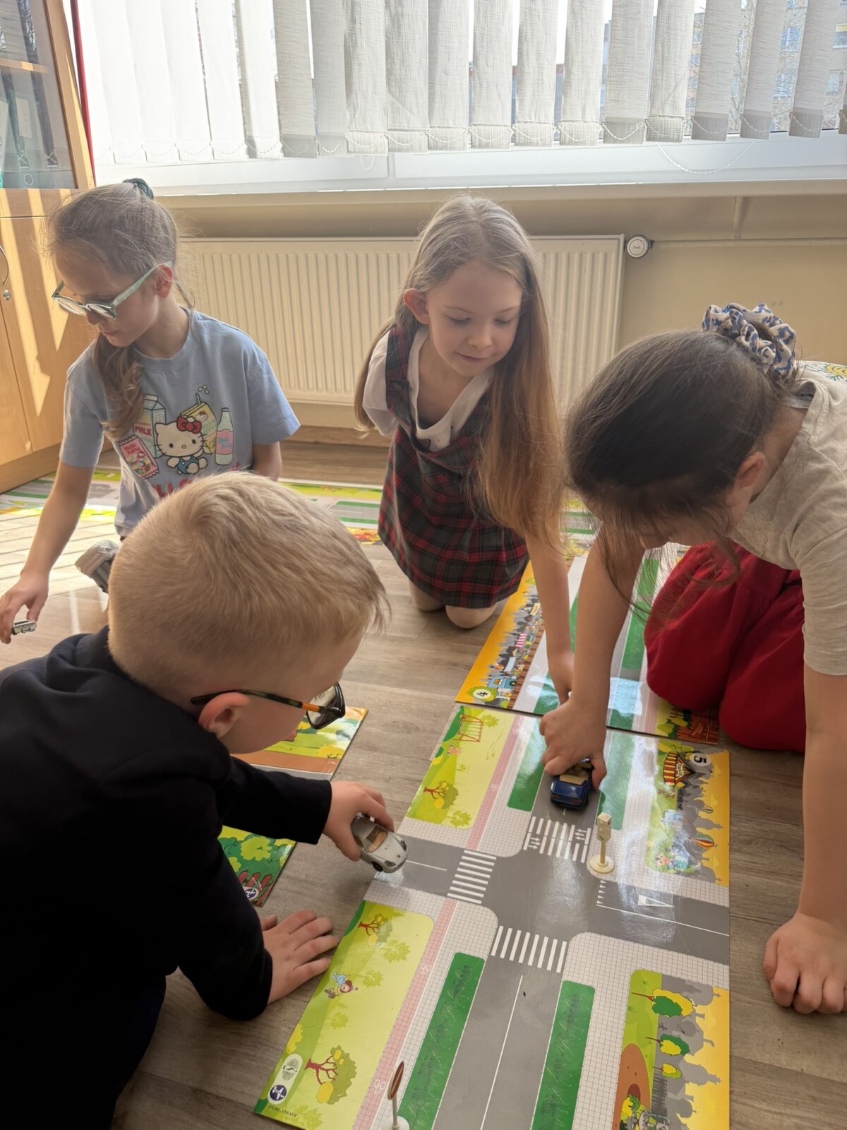 Vaikai žaidžia saugaus eismo žaidimus, dalyvauja viktorinose, sprendžia praktines situacijas. Žinias panaudoja ir kūrybinėje veikloje (kuria kelio ženklus, atšvaitus, gatvę ir kt.).