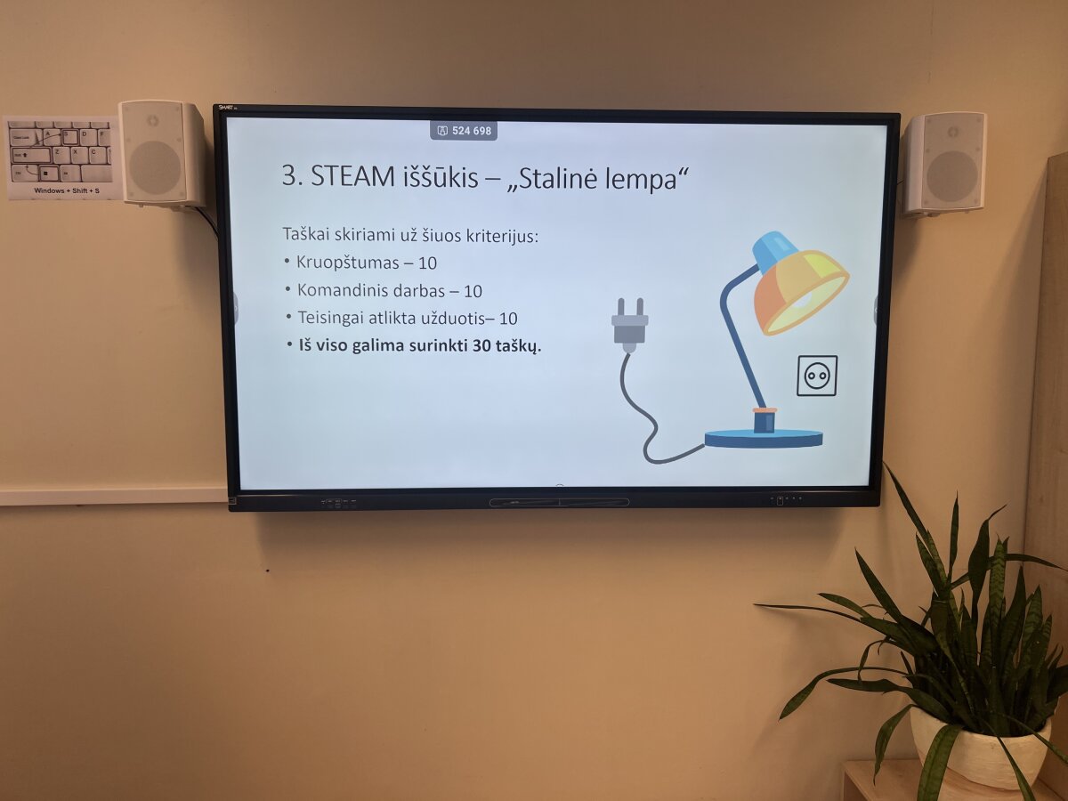 Trečiojoje STEAM užduotyje mokiniai pagal instrukciją konstravo veikiančią stalinę lempą.