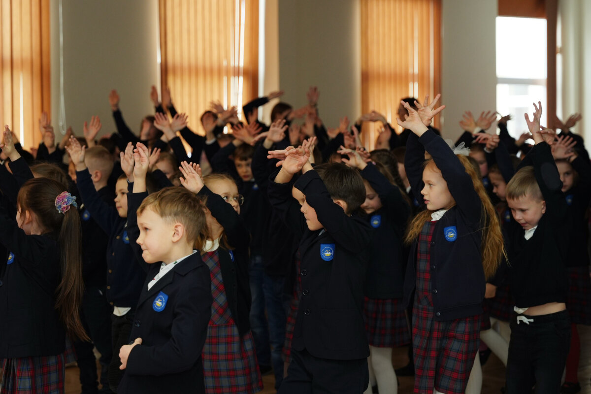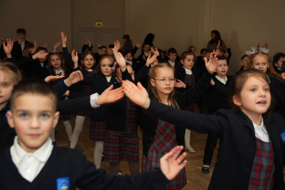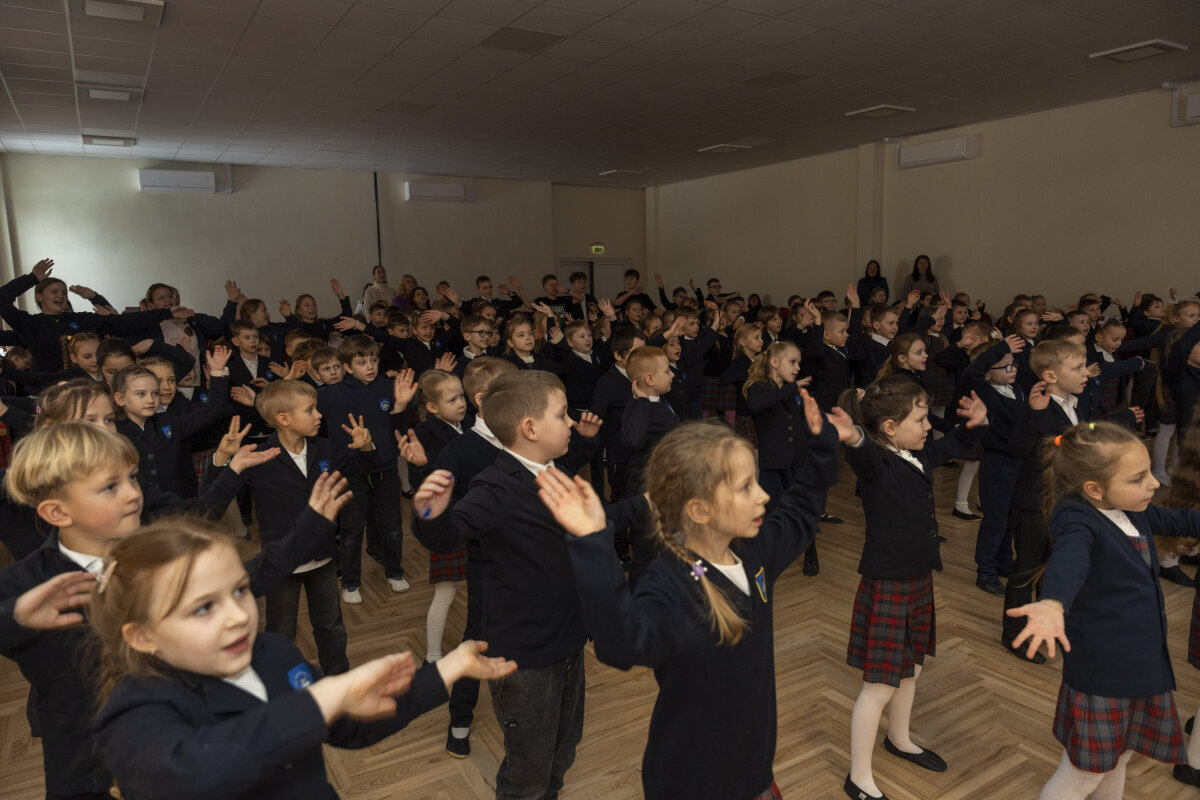 Šventinės pamokos „100 dienų kaip pirmokas esu“ metu mažieji mokiniai atskleidė savo kūrybiškumą ir pasidžiaugė tuo, ko išmoko per pirmuosius mėnesius. Jiems padėjo  pirmų klasių mokytojos, muzikos mokytojos S. Spranaitytė ir I. Jonavičienė, šokio mokytojas E. Račkauskas. Pamokoje dalyvavo ir 5c klasės mokiniai M. Baliutavičius, Ą. Mockus.